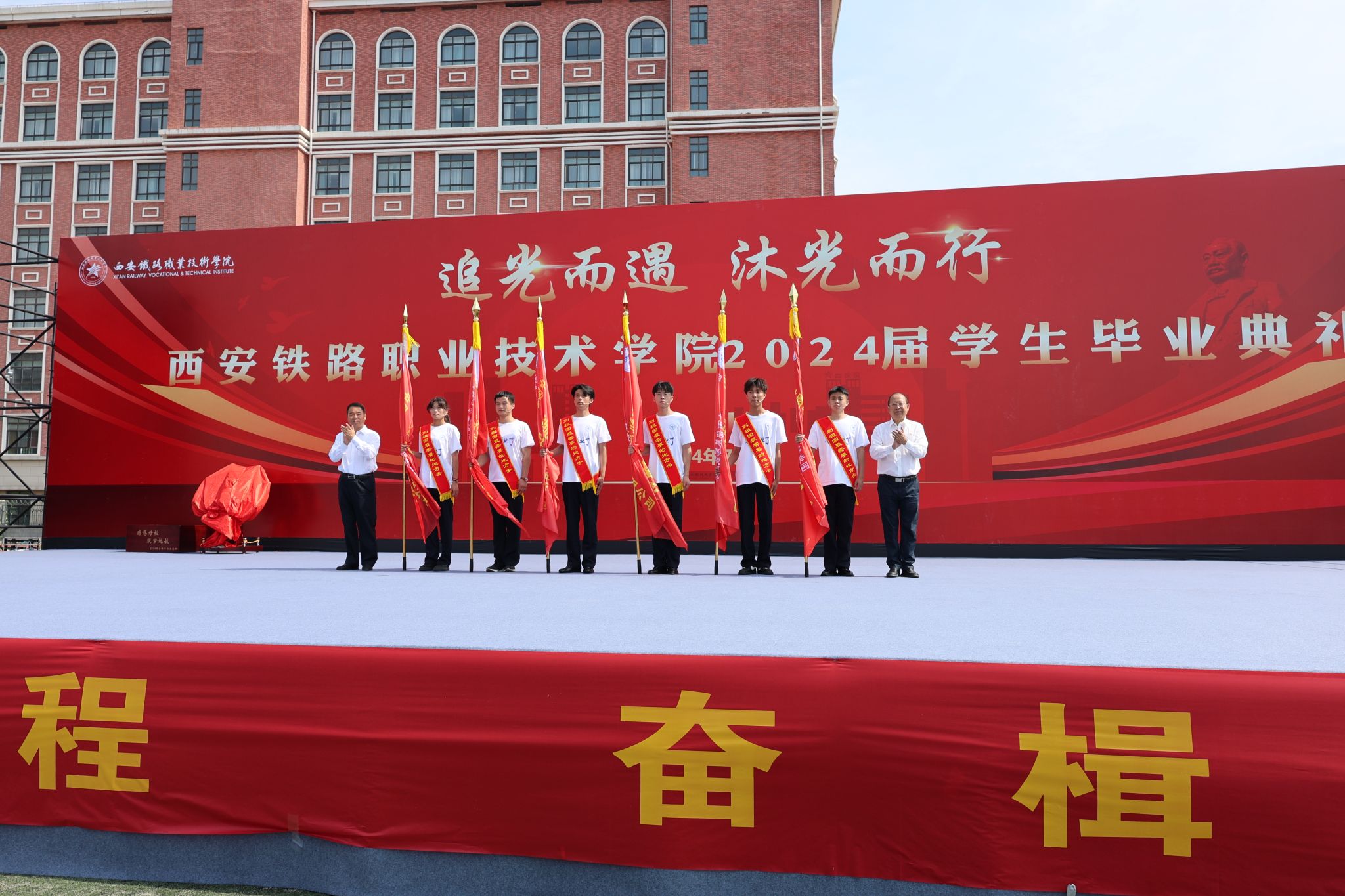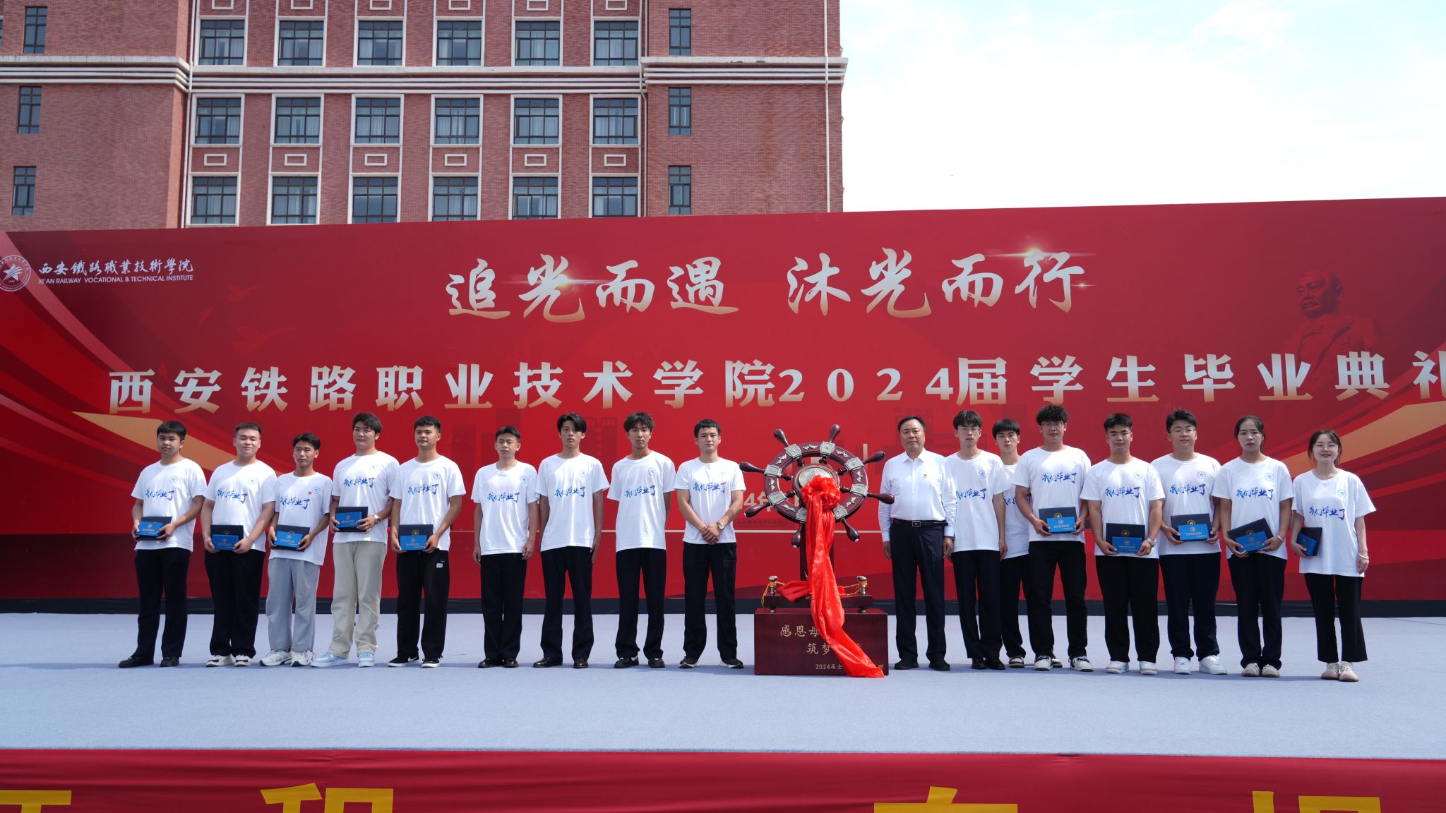 施利民为毕业生代表颁发毕业证书,并接受了毕业生们赠送的纪念品——象征航向的船舵。船舵代表着正确的航向,寓意西铁院把稳发展之舵,为党育人,为国育才,坚持办学不脱轨,育人不离道的办学理念;西铁院学子们也将把稳自己的人生之舵,筑梦远航,乘风破浪,去建设交通强国,实现中华民族伟大复兴。