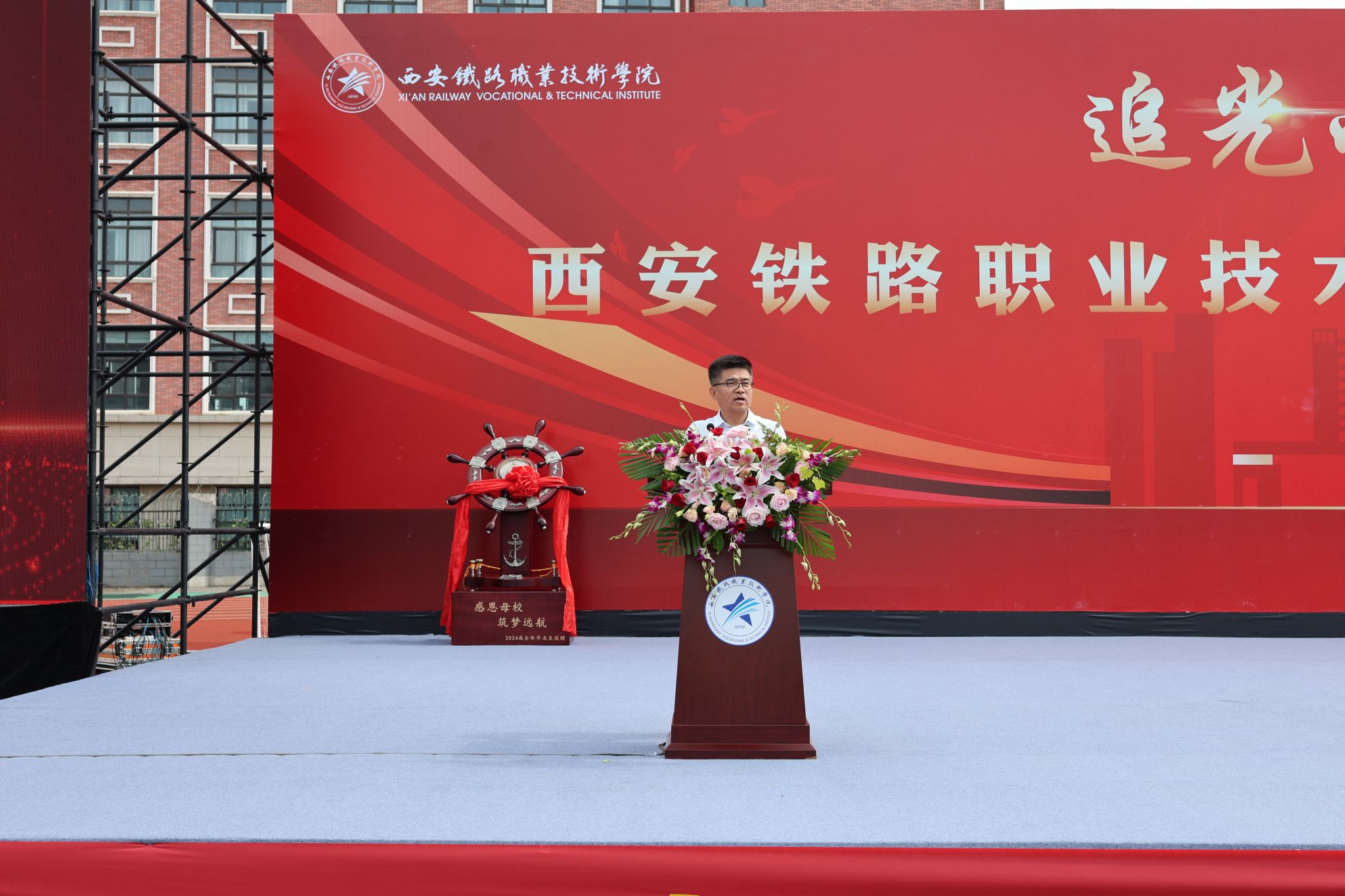 接下来,赵春平发表了热情洋溢的致辞。赵春平对2024届毕业生提出以下三点嘱托:第一,希望同学们永葆初心,以家国情怀照亮西铁院人的远方;第二,希望同学们涵养匠心,以拼搏奋斗擦亮西铁院人的底色;第三,希望同学们坚定信心,以踏实笃行展现西铁院人铁的担当。赵春平深情地讲到,母校是同学们职业生涯的根基,同学们是母校延伸到远方的脉搏,希望毕业生们带上母校老师们的期待和祝福,奔向美好而灿烂的未来!