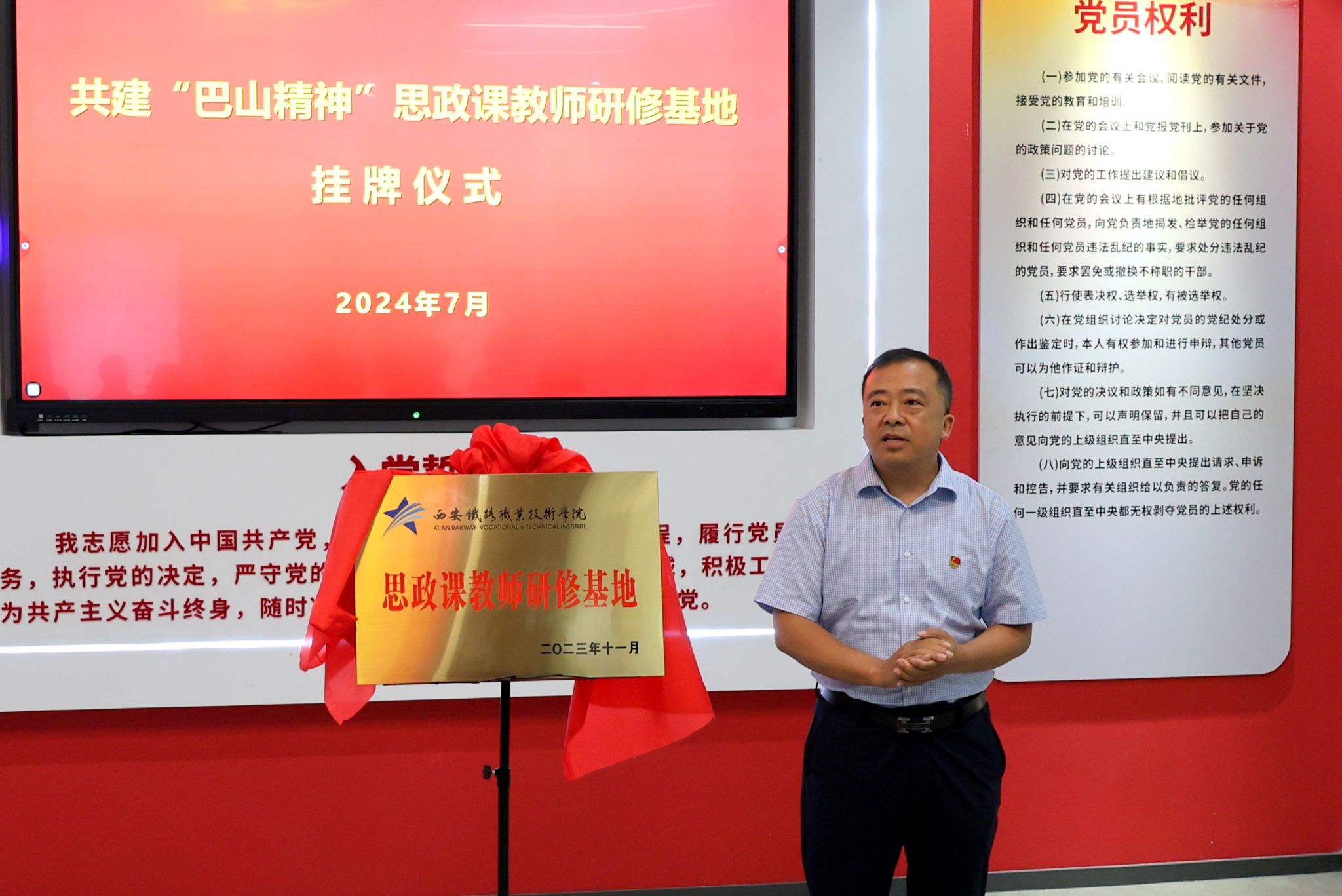 活动伊始,安康工务段党委书记柳青和学院党委副书记任治军共同为“巴山精神”思政课教师研修基地揭牌。
