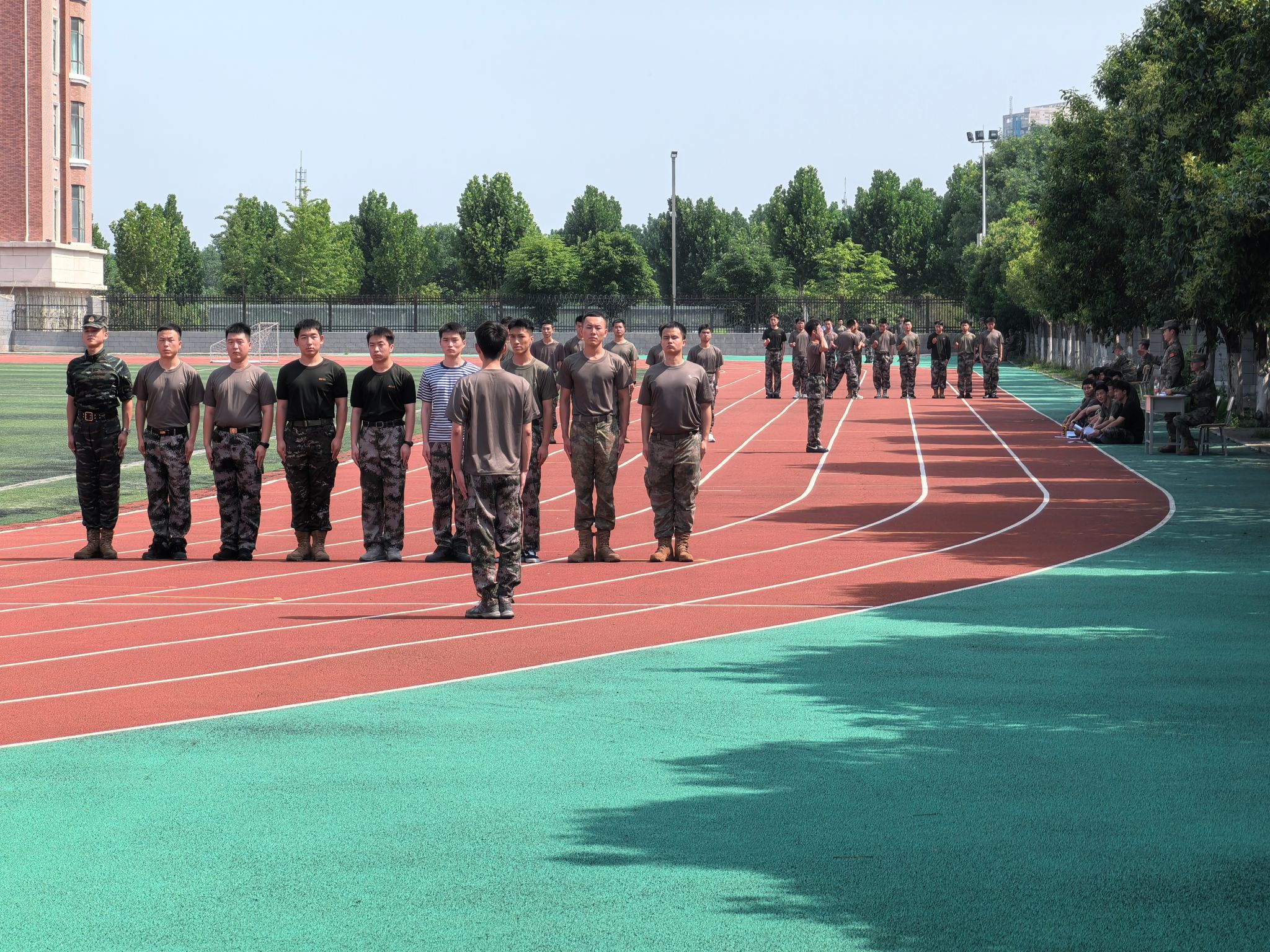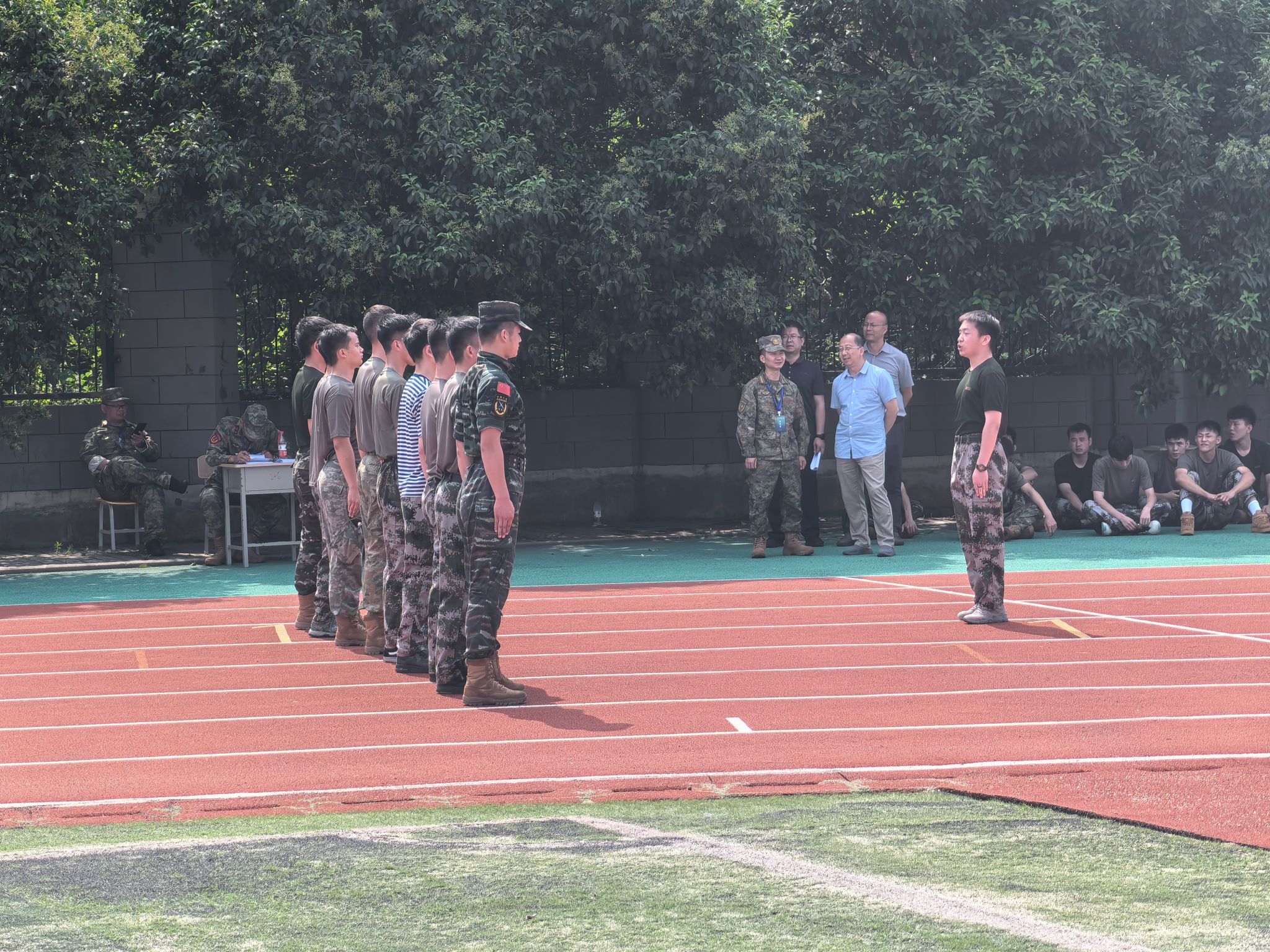 技能测试则在操场上进行,学生教官们以整齐划一的队列动作和娴熟的教学法,赢得了考官们的一致好评。