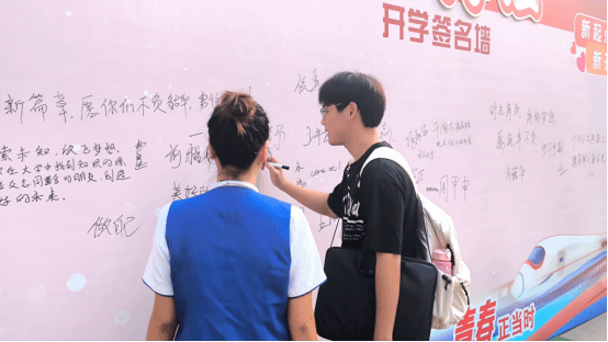 在学长学姐的指引下,新生们手持录取通知书,穿梭在熙熙攘攘的人群中,逐一完成资料审查、系统注册等一系列报到手续。同时,在新生入学的过程中,学院还准备了很多趣味小活动和精美小礼品,设立开学签名墙,让新生写下对未来的期盼,表达对新生的欢迎和美好祝福。