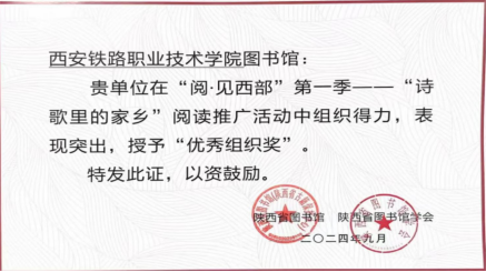 9月19日,在陕西省图书馆学会、陕西省图书馆及陕西省公共图书馆联盟联合举办的“首届联合学术年会暨阅读推广工作会议”上,必赢官网图书馆作为“阅·见西部——诗歌里的家乡”项目优秀组织奖获奖单位参加了会议。