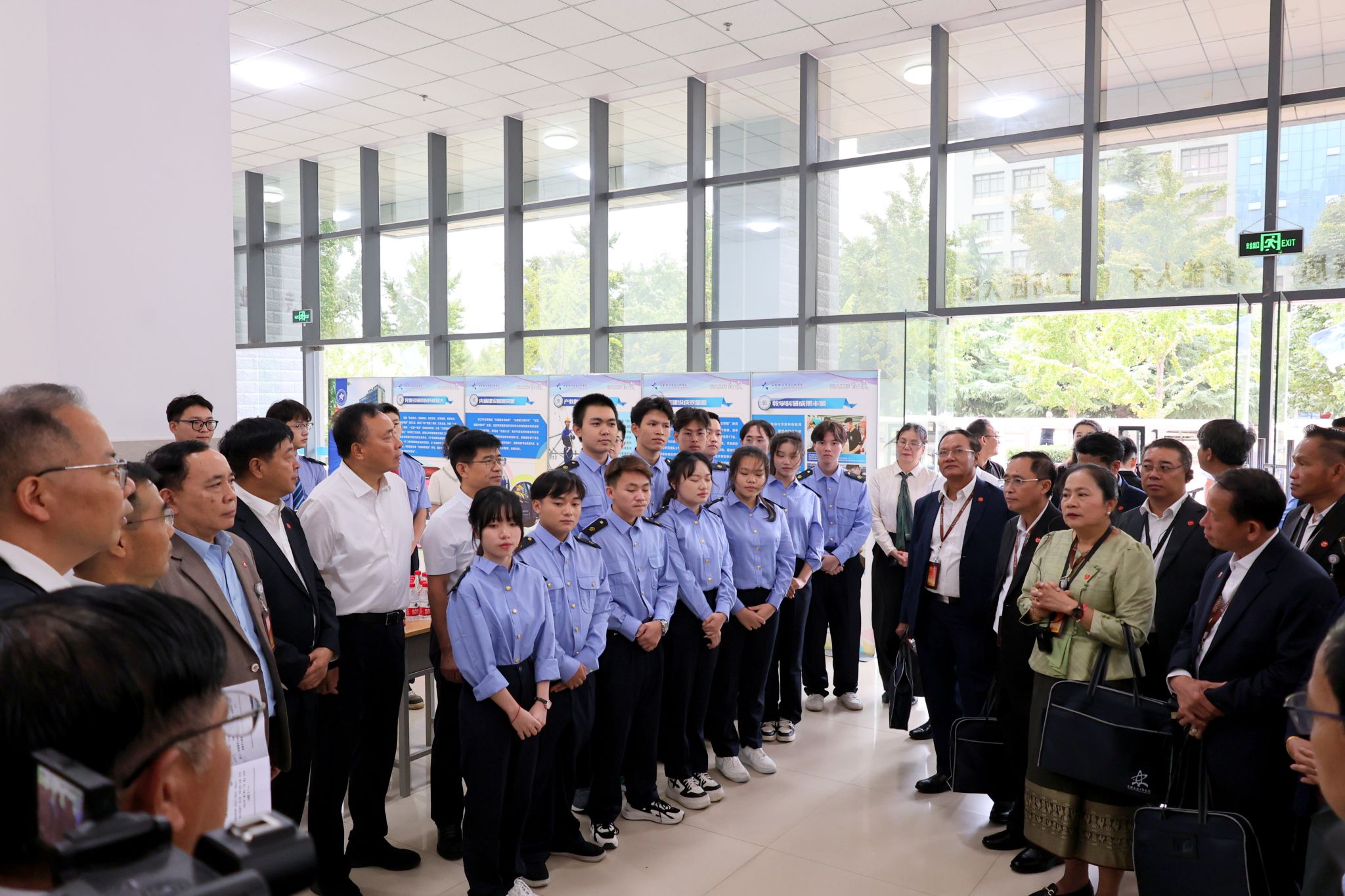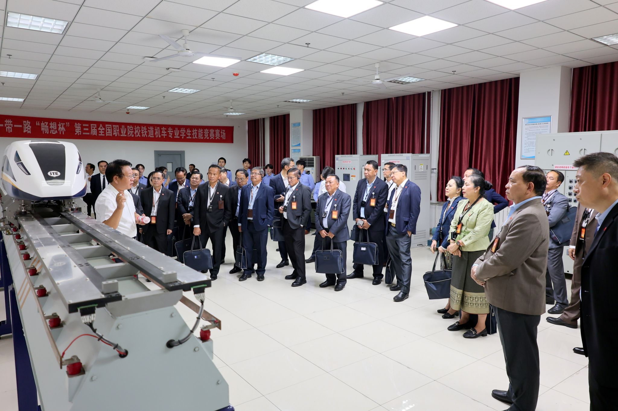 在参观过程中,赵春平与老挝教育体育部党委常委京玛诺•蓬玛哈赛、公共工程和运输部党委副书记、副部长兰•显阿蓬等领导就加强中老两国职业教育合作进行了交流和探讨。双方均表示希望加强“中老”铁路人才培养力度,进一步深化老挝和中国在铁路人才培养上的交流与合作。