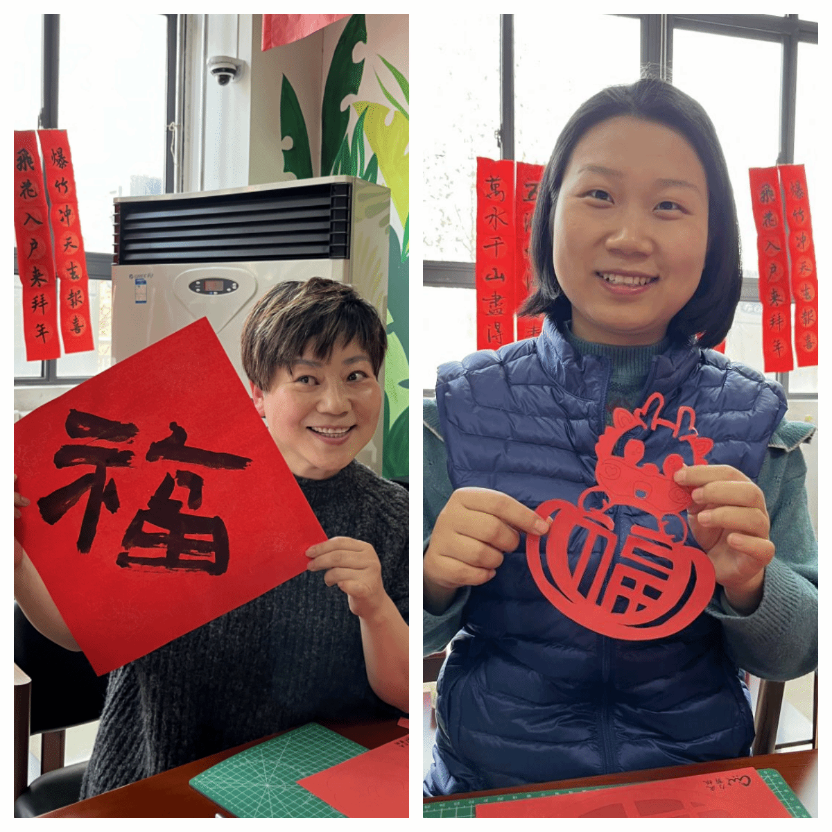 剪纸活动吸引了众多师生的参与,大家纷纷拿起剪刀和彩纸,一笔一划地认真裁剪刻画,一个个精美、独具特色的福字窗花剪纸作品在巧手中诞生。师生们或剪裁交流,或驻足观赏拍照留念,现场欢声笑语不绝于耳。