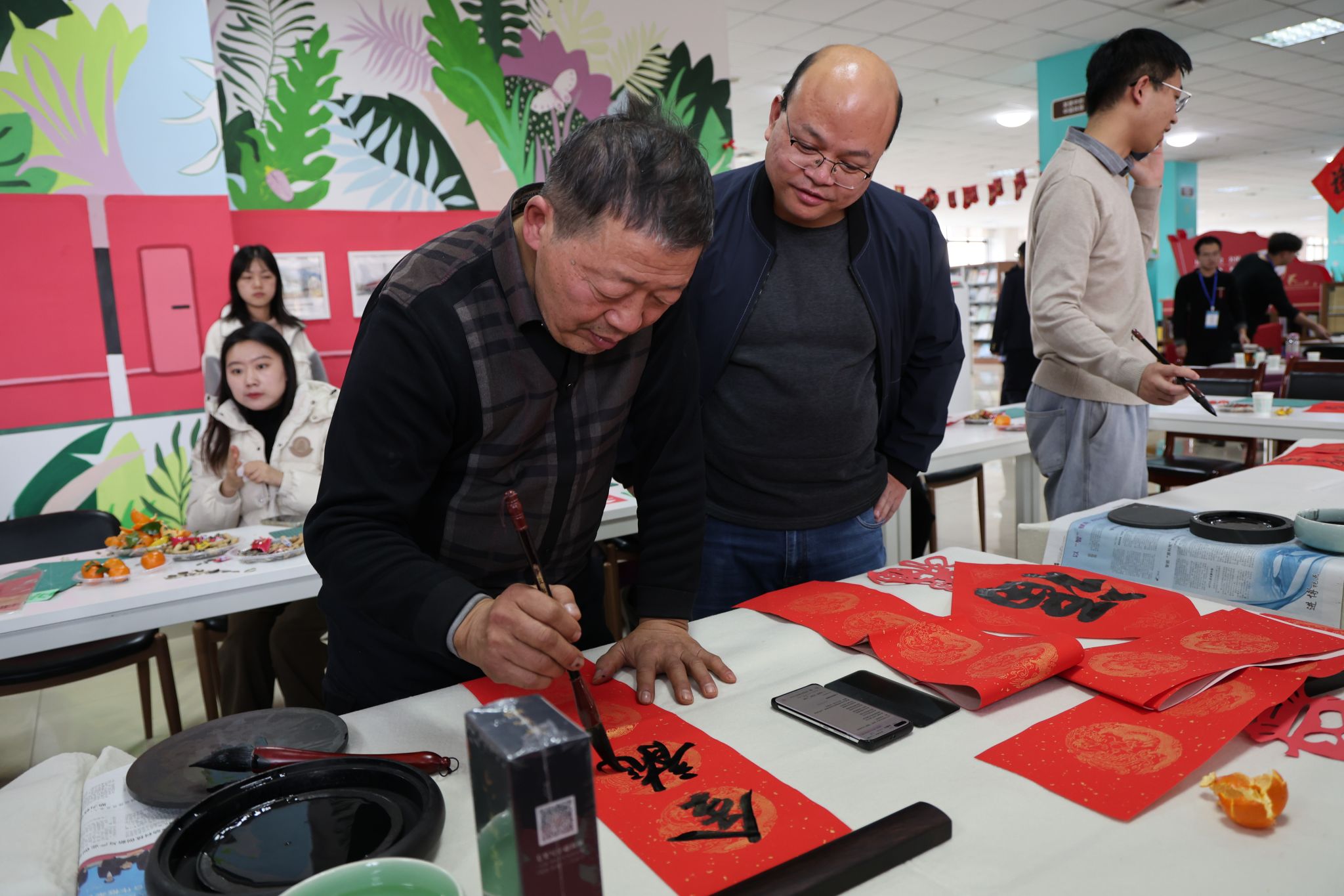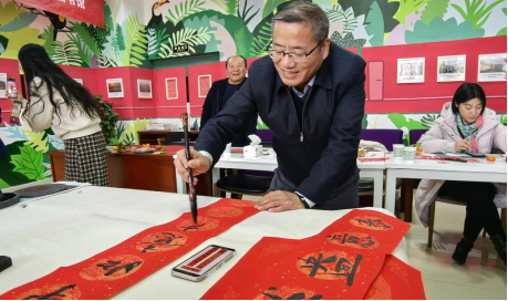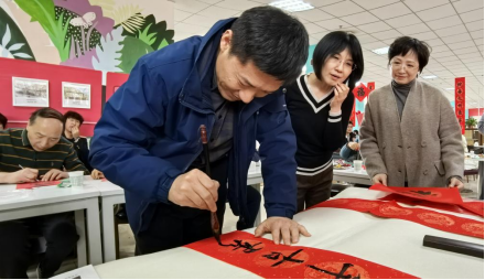 活动中,滕勇、毛卫军、王树、马建萍、周文博、王唯燕、张光华等老师以及书法名师李铭、国际交通学院外籍教师及学生书画社代表现场挥毫泼墨,或笔走龙蛇、气势磅礴,或细腻温婉、韵味悠长,在热闹祥和的氛围中,一幅幅寓意吉祥、带着美好祝福的春联呈现在大家面前,现场为师生们送出了近200副春联和“福”字。