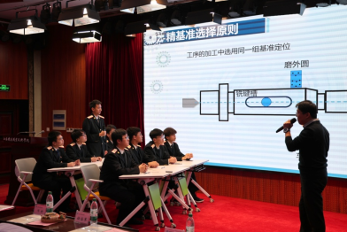 其次在课程展示环节,梁晓哲副教授以《高速切削与五轴加工》和《数控加工工艺》两门课程为例,以课程思政为核心,以人工智能、信息手段为辅助,通过创设情景、任务驱动、实战演练、小组讨论、积分进阶,总结固化等方式让学生沉浸式学习,打造“生动”课堂,全方位展示创新“融”课堂的实践路径。