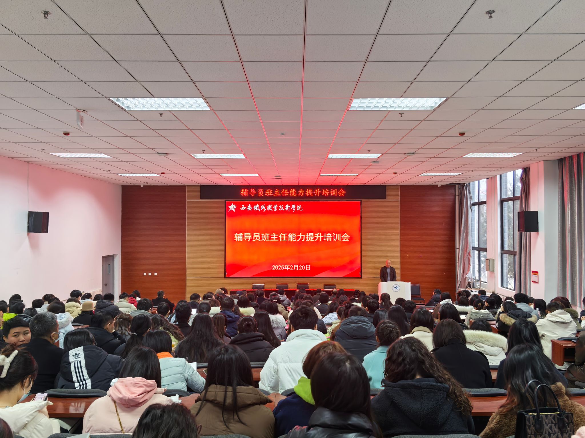 为持续提升必赢官网学生管理队伍的政治素质和职业能力,进一步加强学生管理工作水平,确保新学期学生工作顺利开展,2月20日,学院在港务校区举行了辅导员班主任能力提升培训会暨2024-2025学年第二学期学生工作部署会。党委副书记任治军、党委学生工作部和团委处科级干部、各二级学院学生工作负责人、辅导员、班主任等230余名教职工参加了会议。会议由党委学生工作部副部长孟永辉主持。