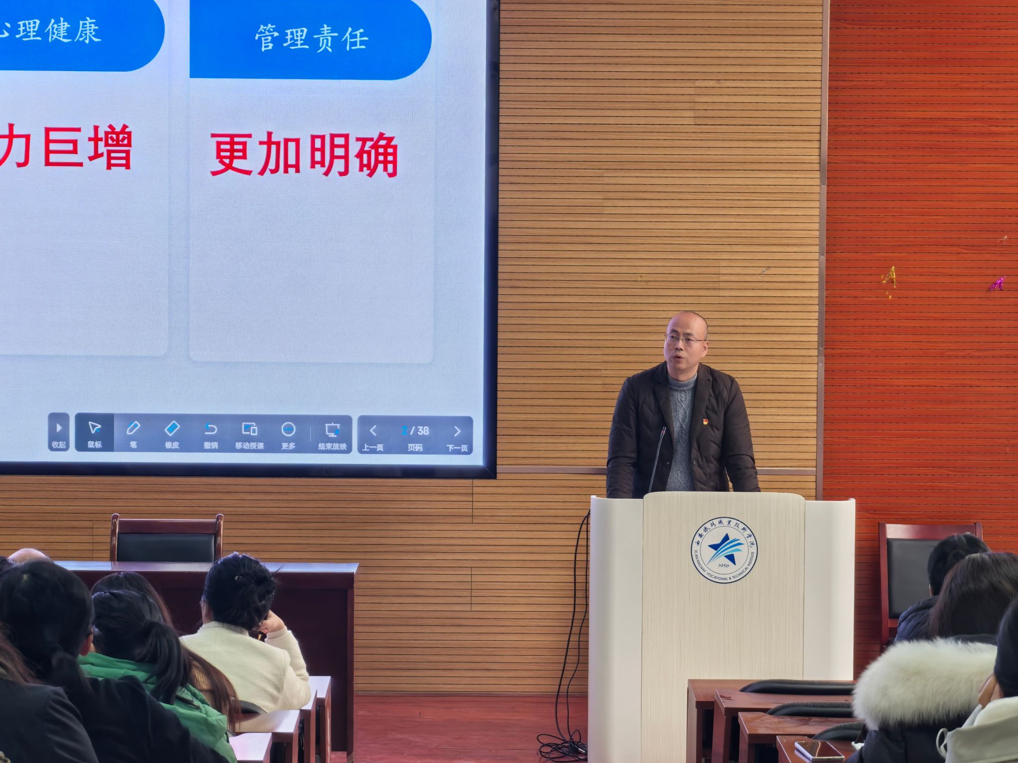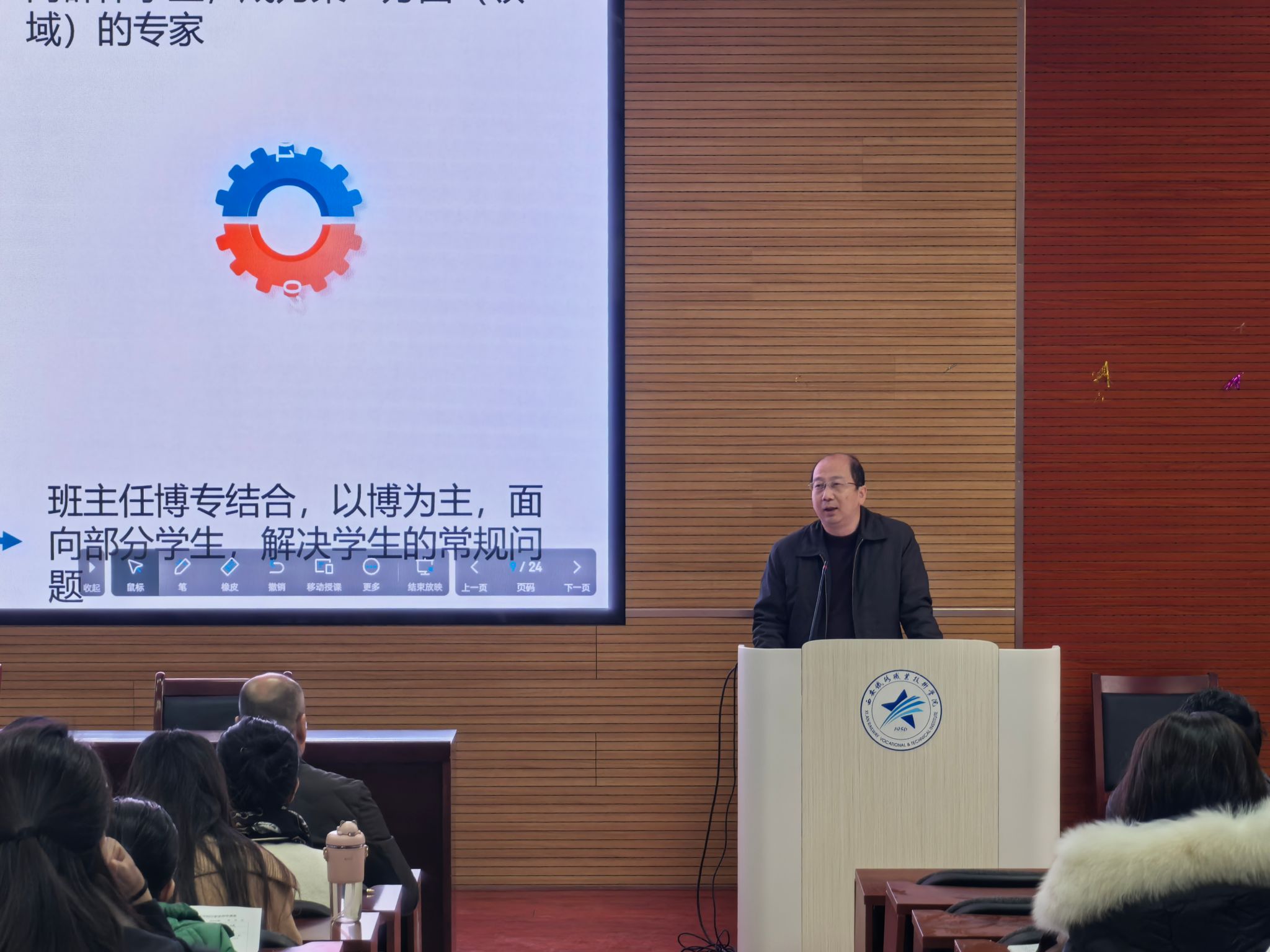 紧接着,孟永辉以《夯实基础 规范管理 守牢底线 教学相长》为题,重点聚焦学生工作管理基础台账的规范化建设和管理制度的完善与应用,与大家共同探讨如何提升学生工作的科学化、精细化与专业化水平,希望各二级院部进一步规范台账分类管理,确保台账记录的完整与规范,在严管厚爱中创新工作方法,不断优化管理方式。