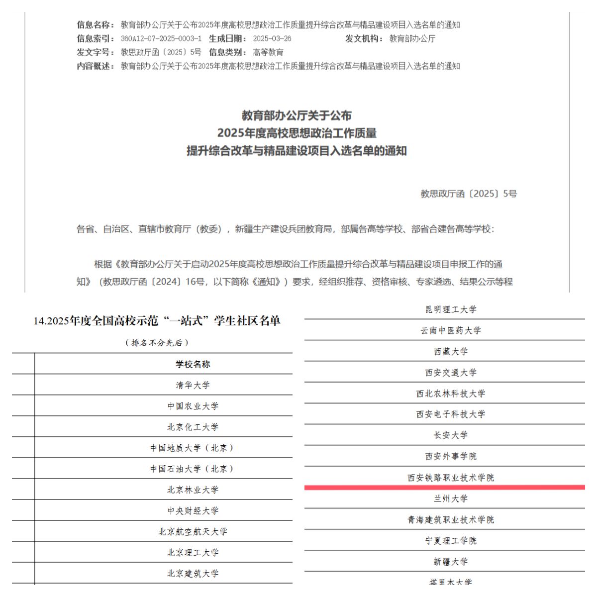 高校思想政治工作质量提升综合改革与精品建设项目是全国高校思想政治工作领域的标志性成果,旨在围绕“时代新人铸魂工程”,整合各类育人资源,培育一批具有全国示范性、引领性的精品项目。2025年教育部首次开展全国高校示范“一站式”学生社区遴选,共有100所高校荣获此殊荣,其中高职院校仅有15所,必赢官网是陕西省唯一入选的高职院校。