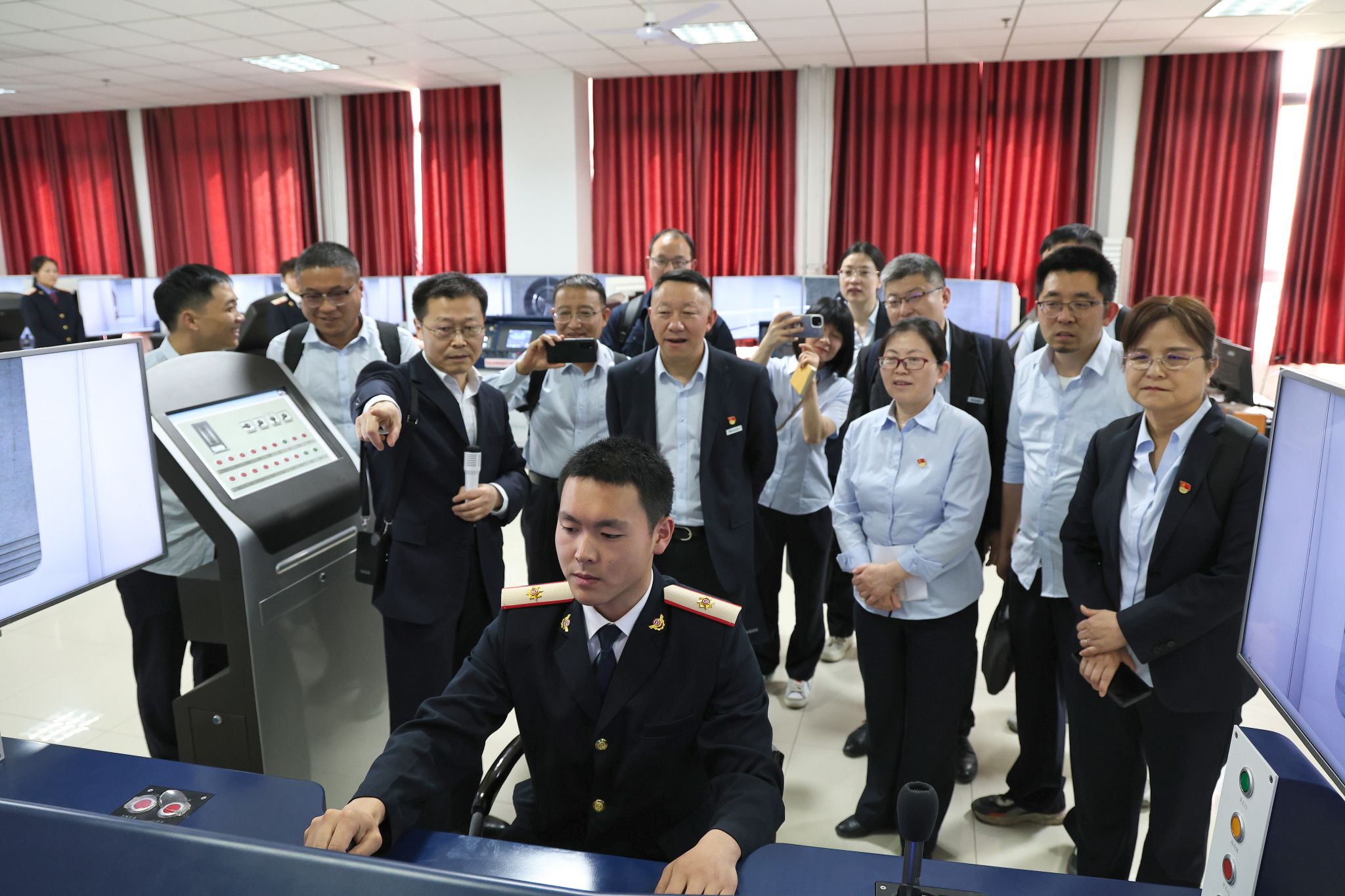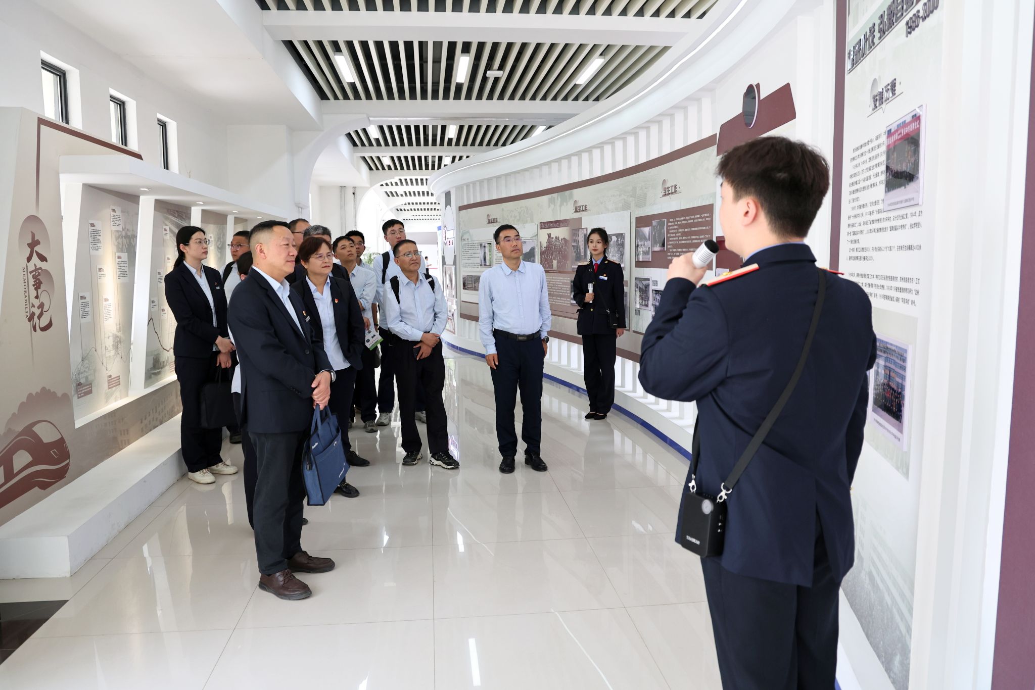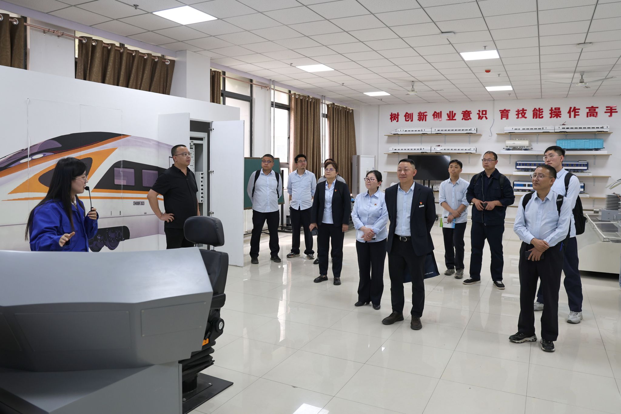 毛希勇一行实地参观了校史馆,重点考察了轨道交通专业综合实训中心和轨道交通专业综合实训室外站场、牵引动力学院实训基地和机电工程学院实训基地,现场观摩高铁模拟驾驶、机车整车实训系统等先进教学设备的操作使用情况。相关二级学院详细介绍了实训基地在数字化教学、安全管控及新技术应用等方面的实践成果,来宾对必赢官网产教融合的硬件设施和教学水平给予高度评价。