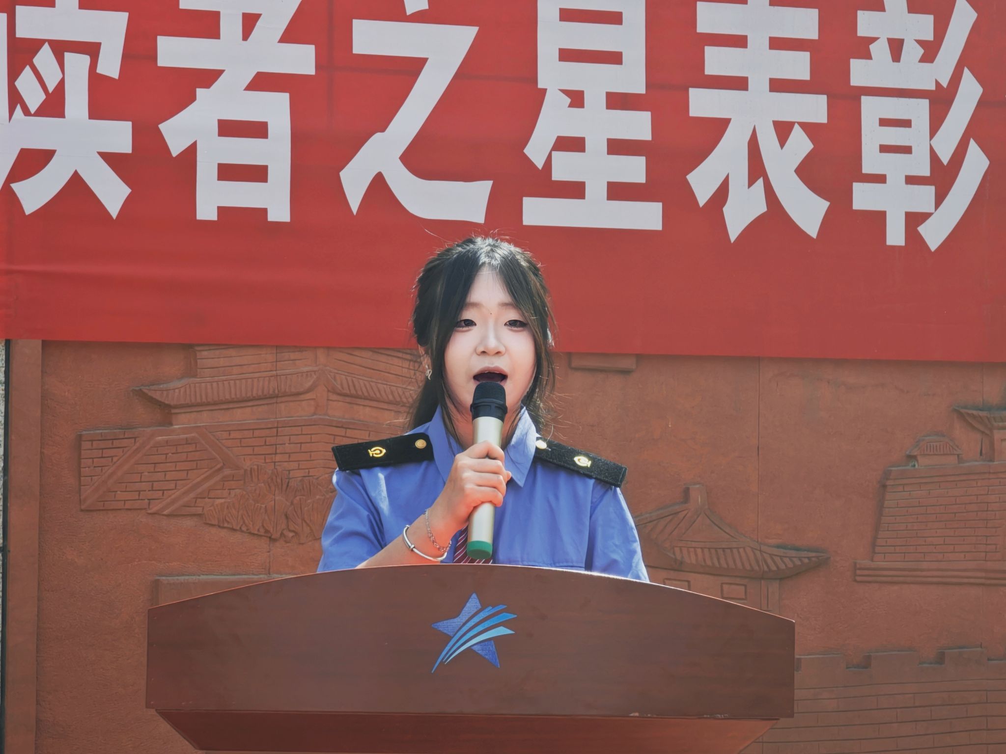 “读者之星”教工代表李洁、学生代表罗曼予相继发言,她们分享了自己的阅读体会,并鼓励大家以书为友,在阅读中汲取智慧,让书籍成为面对时代挑战的精神铠甲。