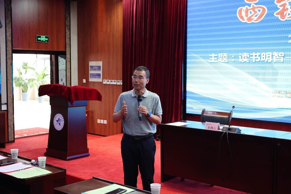 萧迹首先回顾了他与学院的历史渊源和深厚情谊,以及学院诸多学子走上工作岗位后成为他并肩作战的同事,来到活动现场看到挚友、学生感触颇深。在随后的报告中,他强调“礼义仁智信”与读书相辅相成,共同促进人的全面发展;他告诫学生在饱读专业书籍之外也要广泛阅读经过岁月洗礼和历史筛选的文史哲等各类经典书籍,对于人格的完善、志趣的培养、三观的塑造具有深远的影响;最后,他说到读书是一个从量变到质变的过程,需要不断地积累和深入,在短视频冲击、碎片阅读盛行的时代一定要坚持深度阅读,深度思考,在阅读中建立起独立的文化人格,推进整个社会的进步。