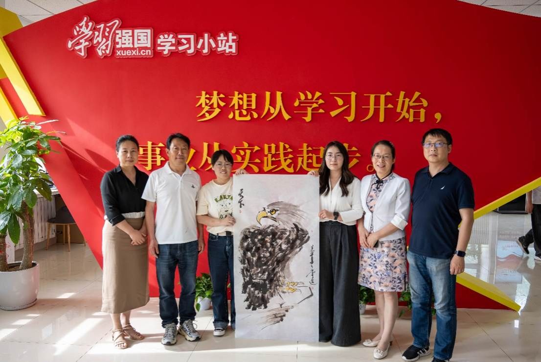 读书分享会结束后,萧迹前往学院图书馆进行参观,并在学习强国小站创作书法作品“读书明智”,绘画“石立鹰”,祝愿师生爱上阅读,实力赢天下,平平安安、和和美美走一生。