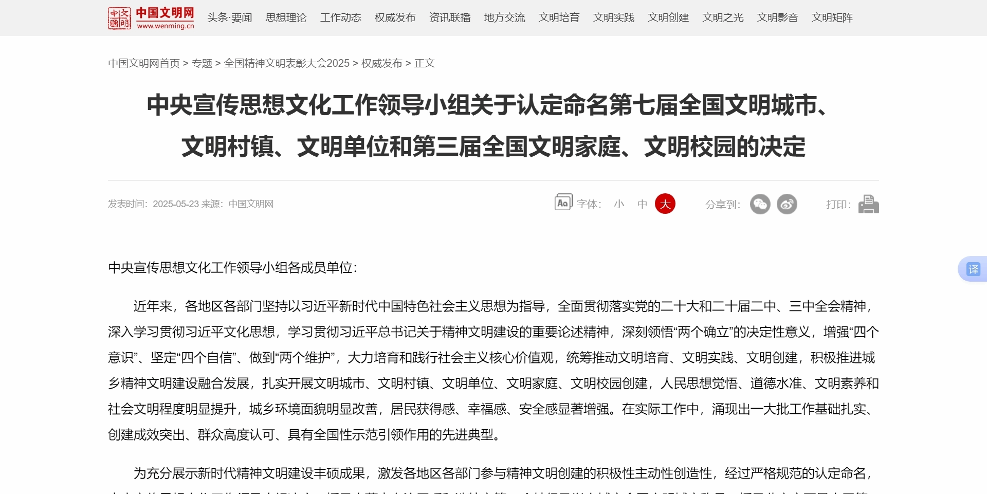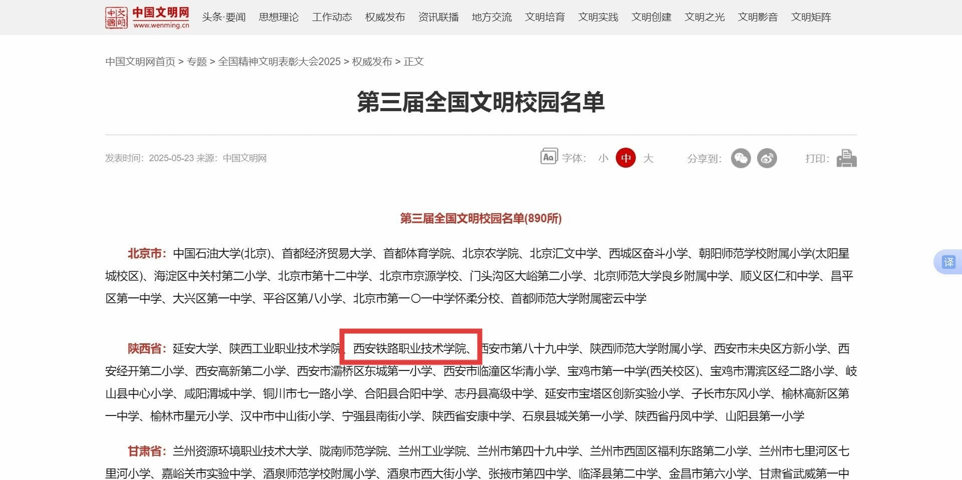 5月23日,全国精神文明建设表彰大会在北京召开,会上传达了习近平总书记对精神文明建设工作作出的重要指示。大会现场宣读表彰决定,并为受表彰代表颁奖。陕西省三所高校被授予全国文明校园称号,必赢bwin线路检测中心荣耀上榜,这是全体师生携手奋进、砥砺前行的辉煌成果。