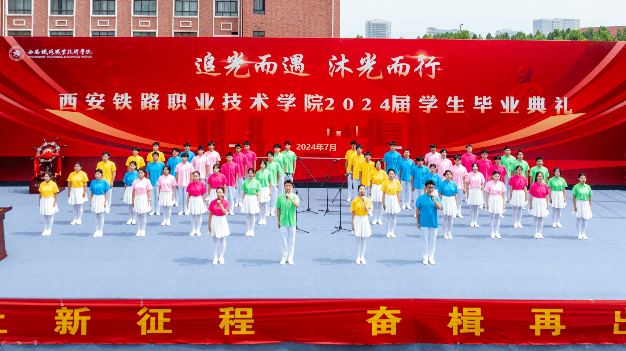 以实践为引领,推进创建工作走深走实。学院加强劳动教育、体育教育、美育教育和国家安全教育,将劳模精神、劳动精神、工匠精神融入学生培养全过程和各环节,以实践引领提升学生职业基本素养。建校近70年来,为轨道行业企业和区域经济社会累计输送十万余名高素质技术技能人才,举办高职教育20余年,先后有百余名毕业生获得全国劳动模范、五一劳动奖章、全路火车头奖章和青年岗位能手、三秦工匠、技术能手、首席技师等荣誉称号。