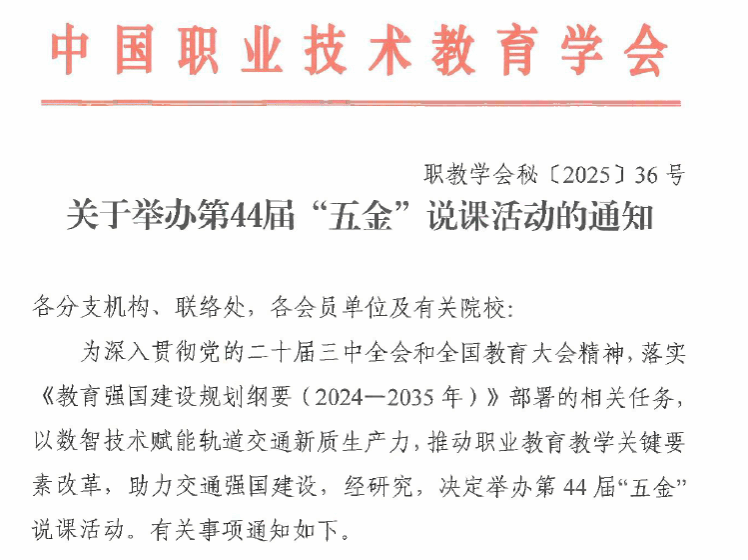 自2025年4月接到中国职业技术教育学会《关于征集轨道交通“五金”说课活动案例的通知》(职教学会秘〔2025〕11号)开始,教务处高度重视,以此为学院“双高”建设成效、推动人工智能深度融入轨道交通人才培养的重要契机,立即开展案例征集相关工作,确保申报工作的高效率开展与高质量产出。在深度解读文件的基础上,精准把握“聚焦‘五金’新基建,助力轨道交通全场景智慧化转型升级”的活动主题,以及“新质生产力、人工智能、‘五金’新基建”的核心关键词,并据此下发了《必赢bwin线路检测中心关于征集轨道交通“五金”说课活动案例的通知》。为压实责任,教务处对申报工作进行了科学规划,要求拥有省级专业群的3个教学院部必须在“说专业、说课程、说专业群、说教材、说实践基地”五个方面均至少申报1个案例;其他院部则需在五个方面中选择其中四个方面进行申报,同样每个方面至少1项。这一策略有效激发了各院部的积极性,最终教务处共收到全院教师提交的申报材料31份,覆盖了全部五个征集类别,形成了优秀的申报基础。不仅充分展示了学院在教育教学改革前沿的探索成果,更彰显了学院在全国轨道交通职业教育领域的实力与影响力。这份亮眼成绩单的背后,是学院教务处精心组织、周密部署和全院教师共同努力的结晶。