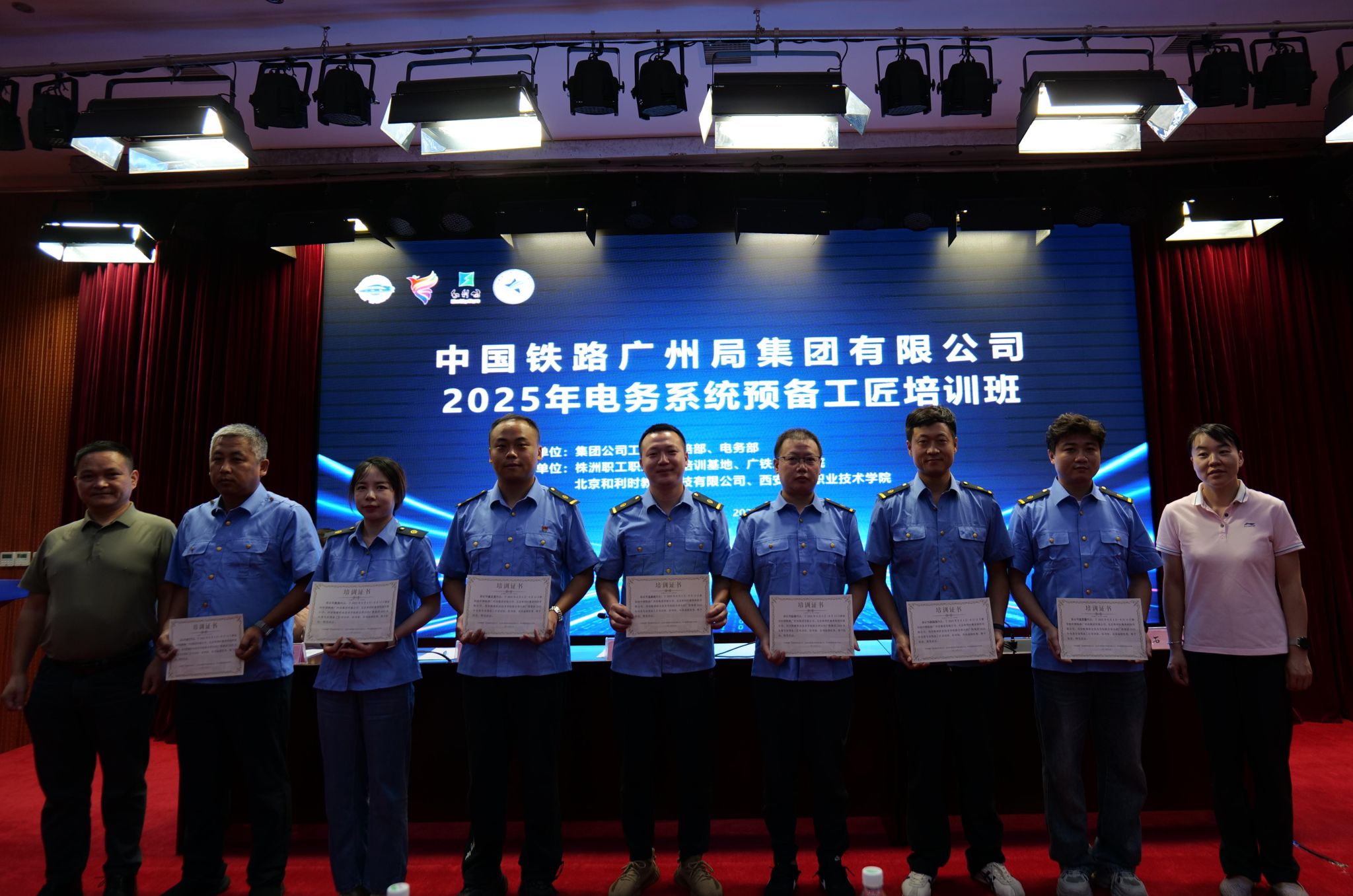 8月15日上午,由中国铁路广州局集团有限公司主办、必赢bwin线路检测中心与北京和利时教育科技有限公司联合承办的“中国铁路广州局集团有限公司2025年电务系统预备工匠培训班”结业典礼在西铁院港务校区办公楼报告厅隆重举行。广州局电务部培训主管曹龄兮、和利时教科公司总经理王国研、西铁院党委副书记任治军等领导及全体46名学员出席典礼,共同见证这场赋能铁路高技能人才的匠心之旅圆满收官。典礼由继续教育学院副院长曾小莉主持。