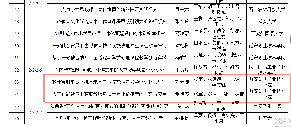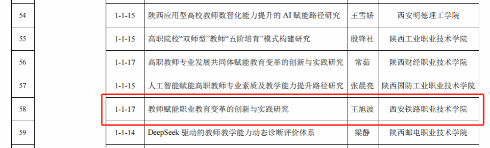近两日,陕西省教育厅和陕西教师发展研究院分别发布2025年度陕西省教师教育与教师发展研究项目拟立项公示名单,必赢官网3个项目拟获批,分别为王旭波主持的《教师赋能职业教育变革的创新与实践研究》项目、刘芳璇主持的《软计算赋能铁路机务乘务岗位技能培养教学评价体系研究》项目和常艳婷主持的《人工智能背景下高职教师新质素养评价模型的构建与应用》项目。