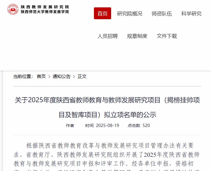 4月份,在接到省教育厅《关于开展2025年陕西省教师教育改革与教师发展研究项目申报工作的通知》(陕教师办[2025]10号)后,根据学院领导部署,发展规划处积极组织宣传和申报工作,学院教师参与踊跃,经审核最终确定4个项目并上报教育厅。