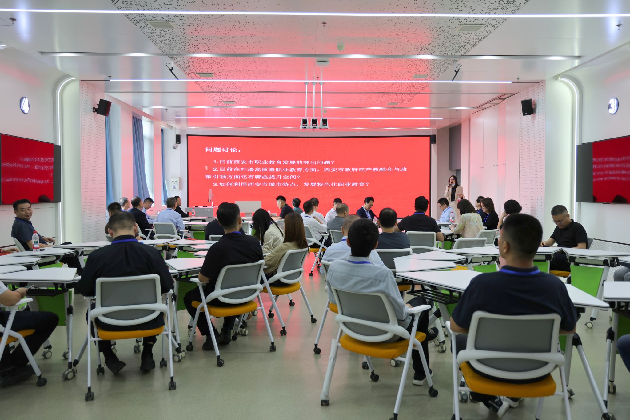 在与会人员的共同见证下,孙新朝与赵春平共同为“西安市委党校现场教学基地”揭牌,并合影留念。孙新朝在讲话中指出,设立校外实践教学基地是市委党校贯彻落实《中国共产党党校(行政学院)工作条例》、推动教学与实践深度融合的重要举措。依托这一平台,党校学员将能够深入职业教育一线,直观感受产教融合的实际成效,提升对现代化产业体系的理解,进一步增强服务地方发展的能力。同时,此举也将促进两校在教学科研、人才培养、资源共享等方面的深度合作,实现优势互补、协同发展。