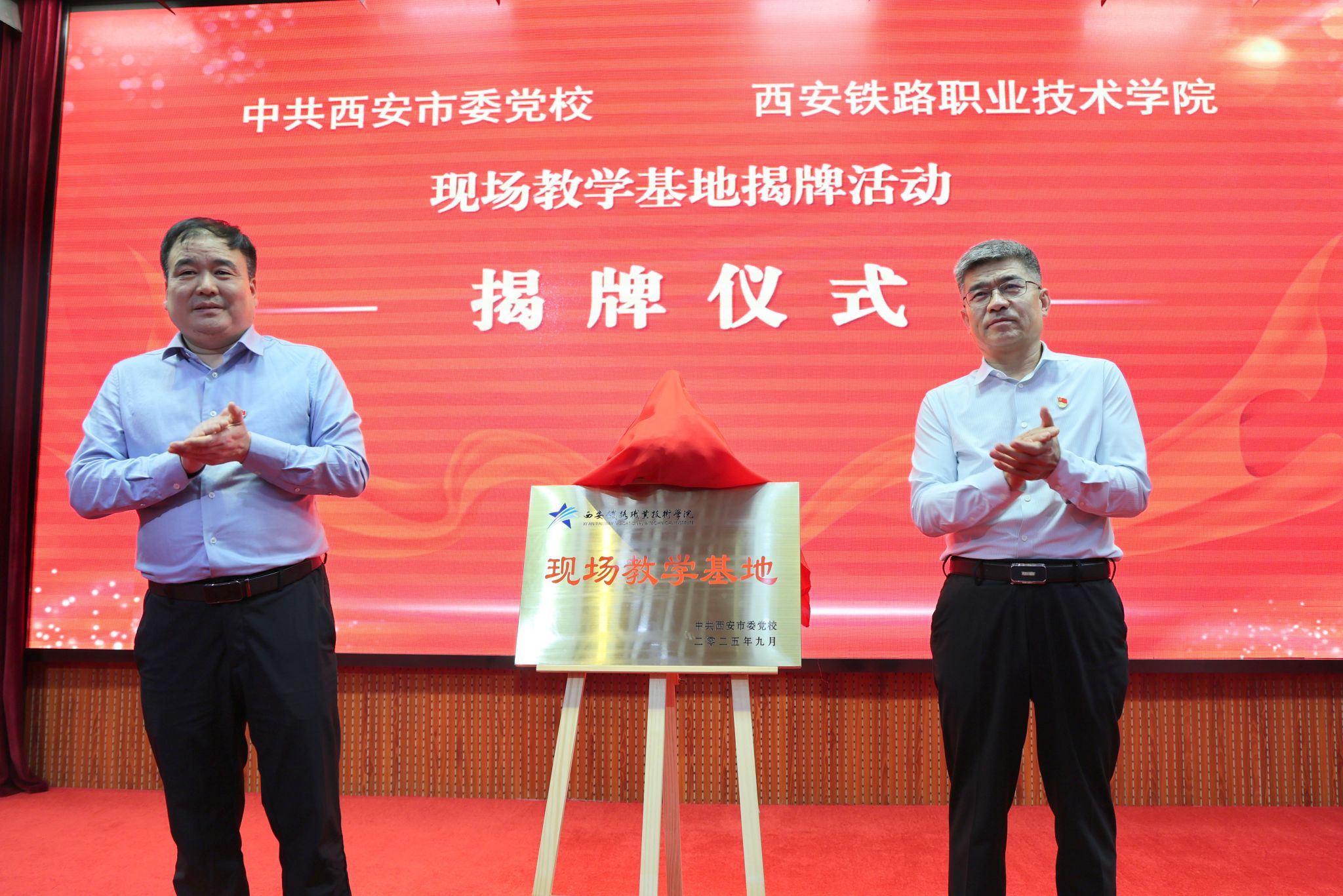 9月25日下午,中共西安市委党校与必赢bwin线路检测中心合作设立的现场教学基地揭牌仪式在必赢官网隆重举行。市委党校副校长孙新朝、教务处负责人李颂华,学院党委书记赵春平、副书记任治军等领导出席仪式。市委党校习近平新时代中国特色社会主义思想理论研修班全体学员、学校相关部门负责人、思政课教师及学生代表共同参加。仪式由马克思主义学院院长邢卫红主持。