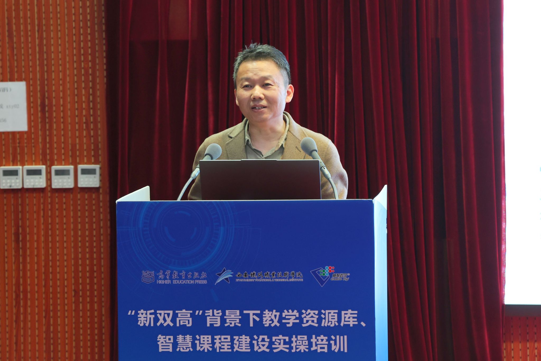 会上,滕勇代表西铁院全体师生员工,向远道而来的各位领导、专家,以及来自全省各兄弟院校的同仁们表达欢迎与感谢!本次实操培训邀请高等教育出版社智慧职教发展中心院校部主任王博,常州机电职业技术学院电气工程学院副院长、工业机器人技术国家级专业教学资源库负责人陈小艳,高等教育出版社技术部讲师邹慧,分别就“新双高”背景下职业教育专业教学资源库、智慧课程的转型升级,工业机器人技术国家级专业教学资源库建设经验,专业教学资源库、智慧课程建设实操演练等主题开展主旨报告和建设、培训指导。专家主旨报告精彩纷呈,与会人员互动有序、交流热烈,共同探讨职业教育数字化转型的新路径、新模式,兄弟院校共同携手为推动陕西省高等职业教育的高质量发展贡献智慧和力量。