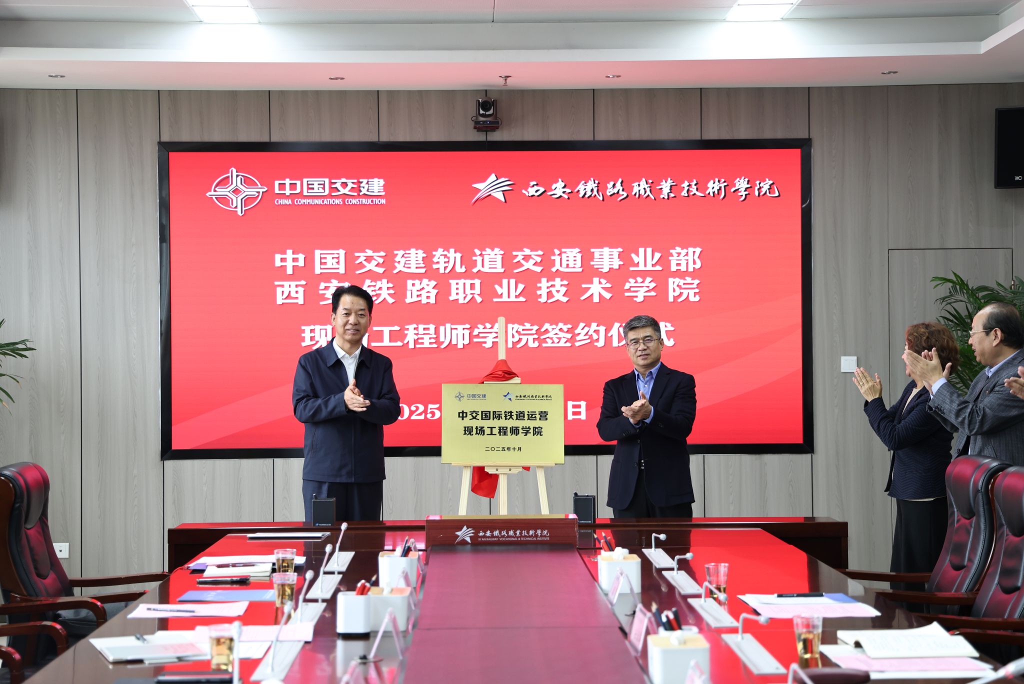 2025年10月23日,必赢bwin线路检测中心(以下简称“西铁院”)与中交国际铁道运营有限公司共建的“中交国际铁道运营现场工程师学院”正式揭牌成立。中国交建轨道交通事业部总经理、轨道交通分公司党委书记、董事长安爱军,中交国际铁道运营有限公司董事长王大海、总经理刘峻峰等一行,与西铁院党委书记赵春平、院长陈红等双方代表共同出席签约暨揭牌仪式,标志着校企双方在深化产教融合、共育高素质技术技能人才方面迈出战略性、实质性一步。