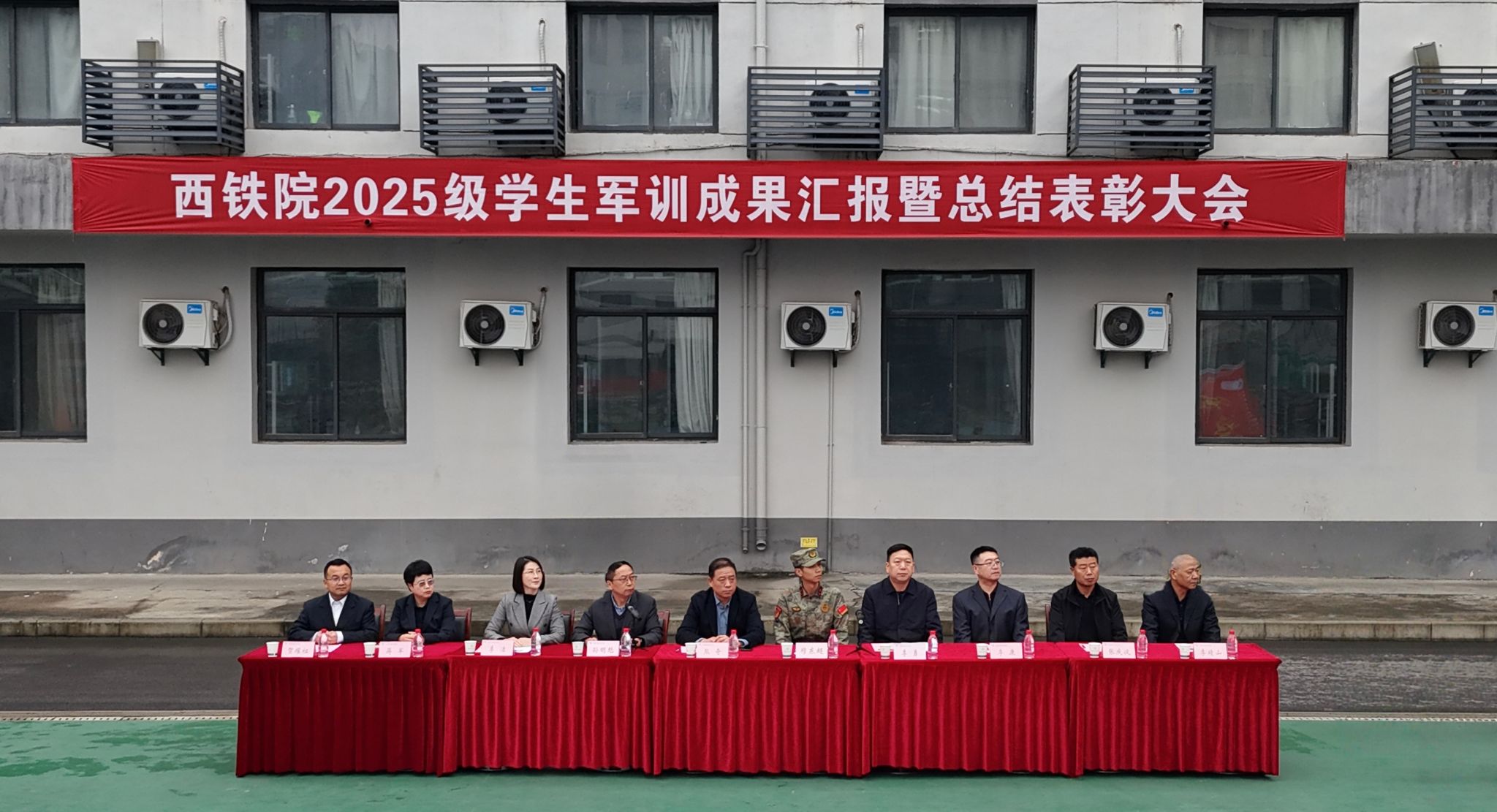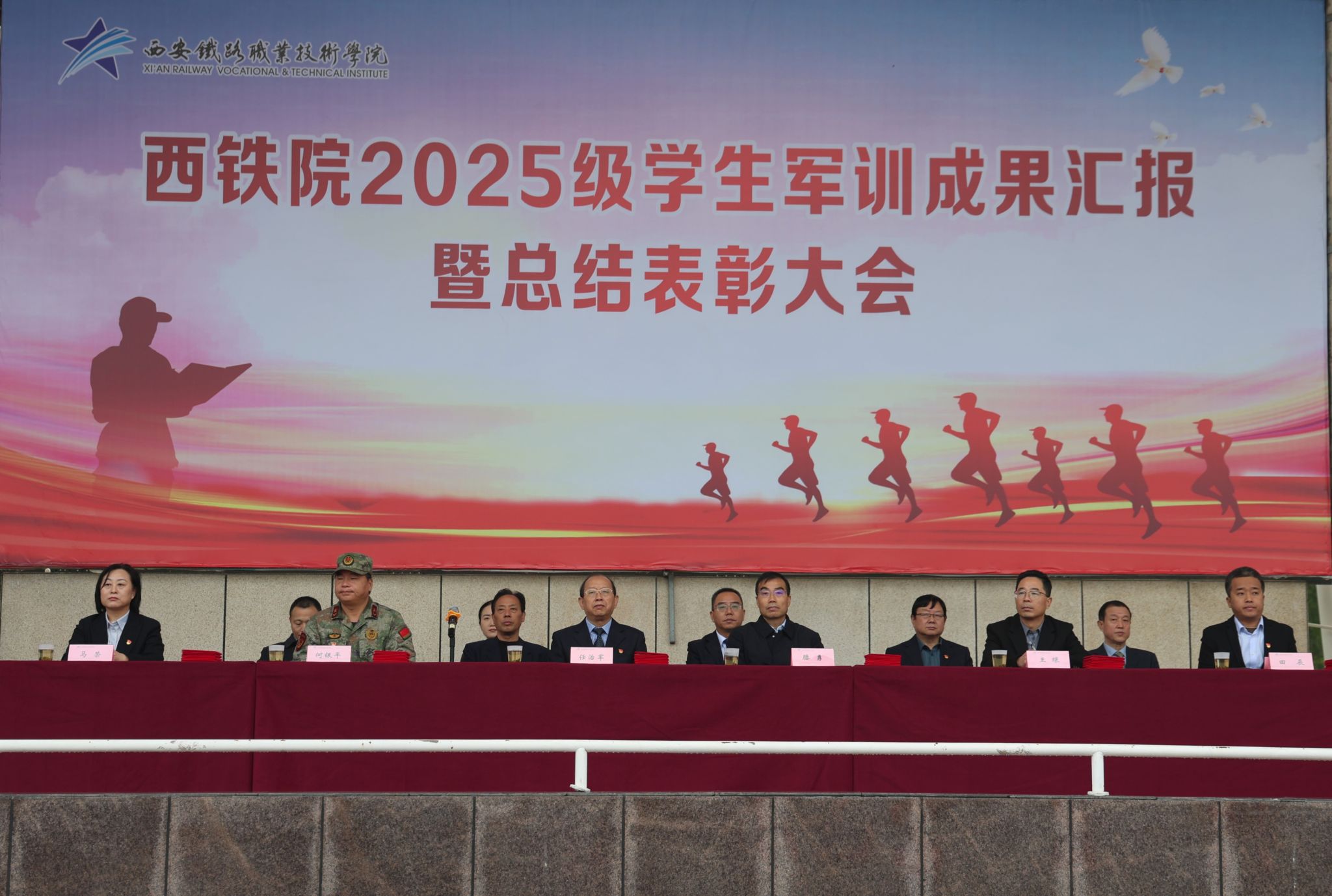 学院领导在总结讲话中向承担军训任务的全体教官致以崇高敬意,向全程跟训的老师表示衷心感谢,向圆满完成军训任务的全体同学表示热烈祝贺,并向2025级全体新生提出三点希望:一要胸怀国之大者,在锚定时代坐标中勇担强国使命,把个人理想融入国家发展战略;二要珍惜青春年华,练就过硬本领,在课堂勤学苦读,在实训室精进技艺,在运动场强健体魄;三要弘扬工匠精神,争做大国工匠,以“西部高铁第一人”王小卫、“巴山精神”传承人刘佳佳、扎根西部的优秀毕业生辛小雨等杰出校友为榜样,为交通强国建设贡献青春力量。