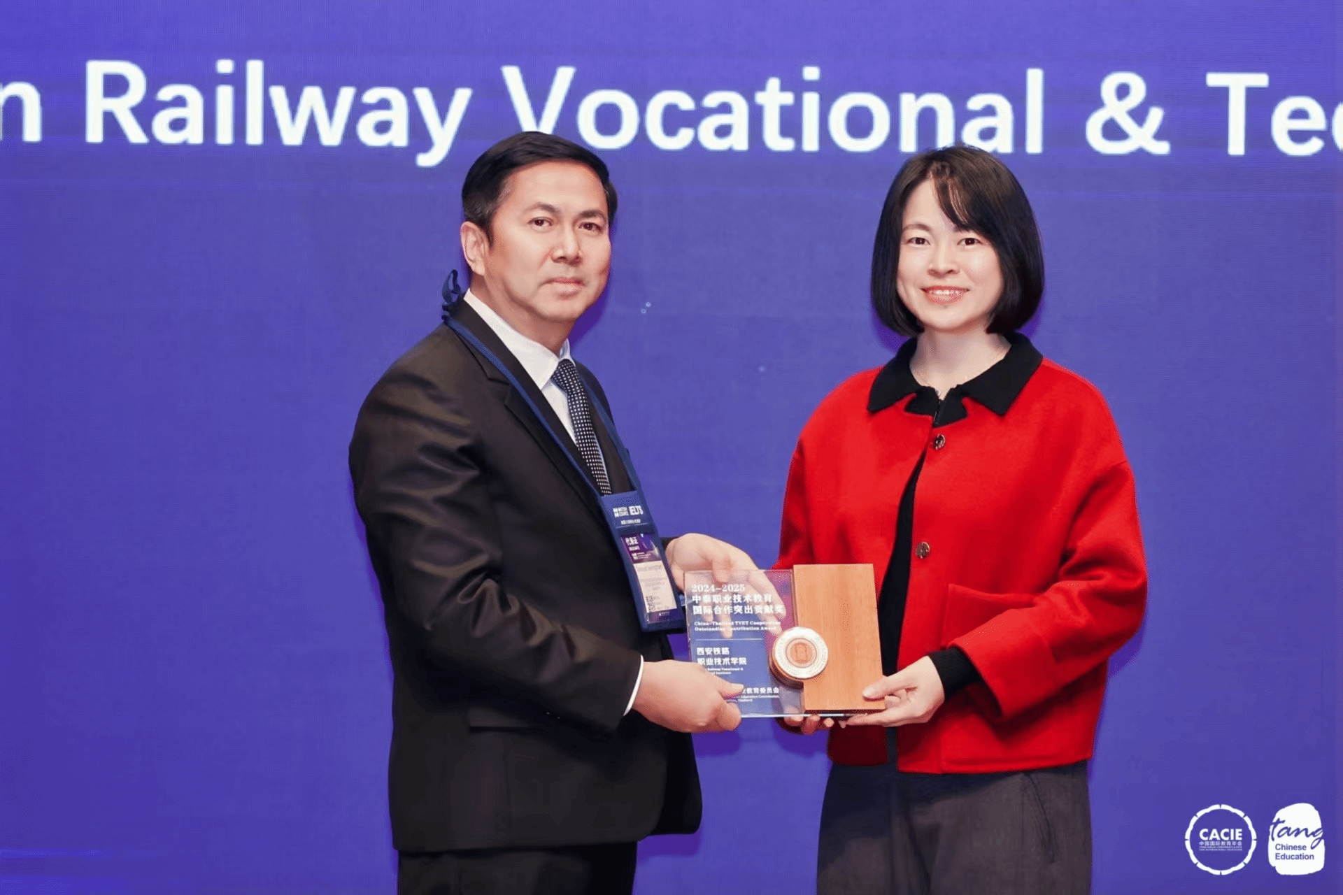 年会重要成果发布环节传来喜讯:张秀红代表学院领取“中泰合作突出贡献奖”。这一荣誉不仅是对必赢官网深耕泰国留学生铁路专业技术人才培养、助力中泰职业教育交流的高度肯定,更充分彰显了必赢官网在职业教育国际化领域的深厚实力与广泛行业影响力。