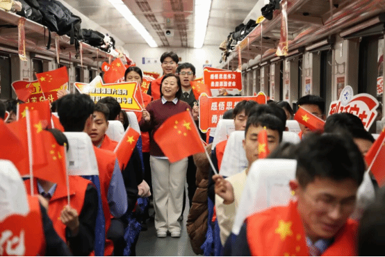 红色专列启新程,移动课堂铸信仰。11月29日8时许,承载着西铁院学子热忱的红色专列从西安出发。车厢内,一场别开生面的“移动思政课”同步开启:带队教师深情分享革命先辈在延安时期“自力更生、艰苦奋斗”的奋斗故事,深度解读延安精神的时代价值;学子们自发唱响《东方红》《南泥湾》等红色歌曲;围绕“新时代青年如何传承红色基因”交流学习感悟,让漫长旅途成为红色教育的生动课堂。