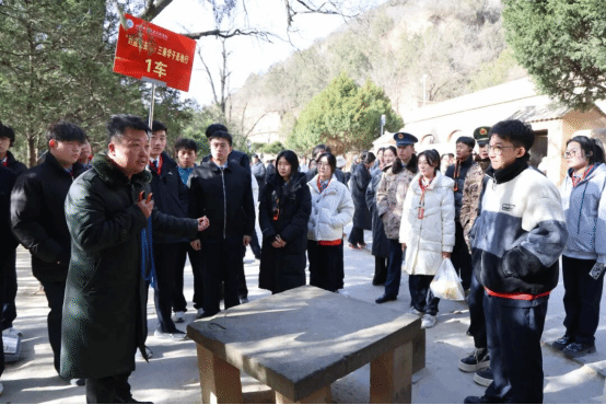 11月30日,师生们循着革命先辈的足迹,在实地探访中感悟初心力量。走进枣园革命旧址,学子们驻足革命领导人旧居。朴素的窑洞陈设、磨损的桌椅器物,直观铺展着“自力更生、艰苦奋斗”的革命日常。研学讲解员结合旧址细节,生动讲述老一辈革命家的工作与生活故事,让“延安精神”有了可触可感的具象载体。