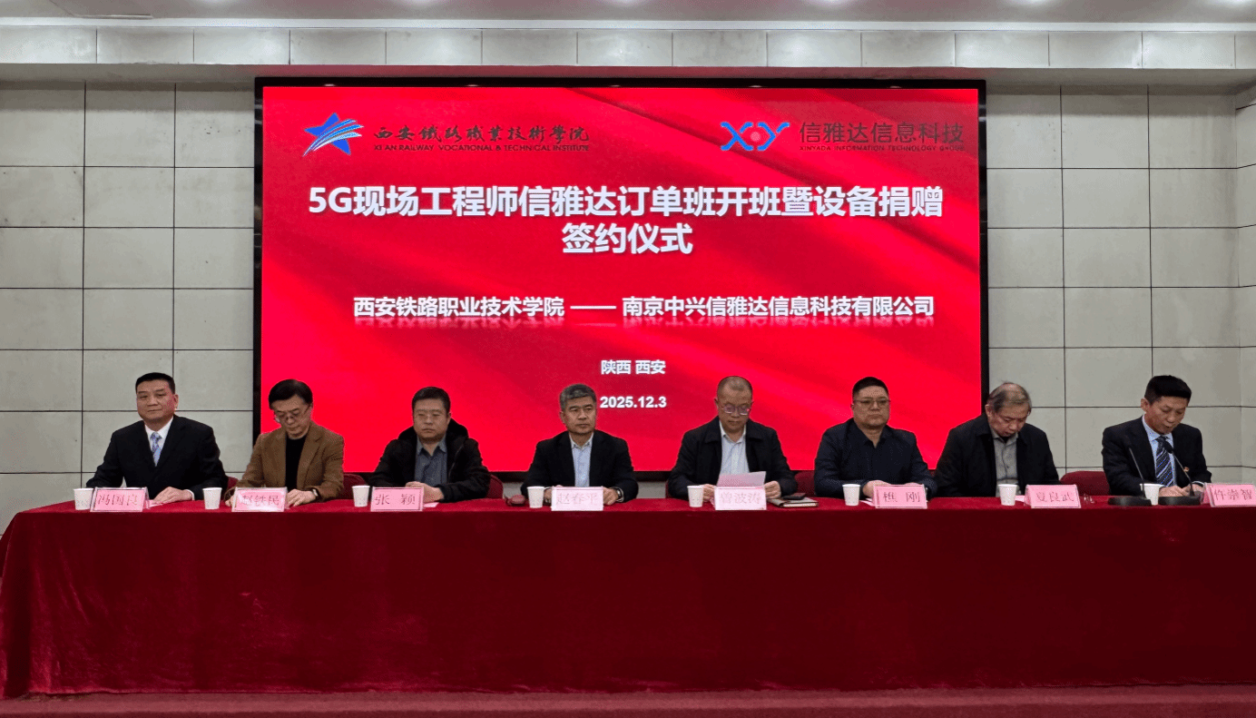 为深入贯彻国家职业教育改革精神,推动教育链、产业链、人才链、创新链深度融合,2025年12月3日,必赢bwin线路检测中心与南京中兴信雅达信息科技有限公司隆重举行5G现场工程师信雅达订单班开班仪式。南京中兴信雅达信息科技有限公司总裁曾波涛、高级副总裁张颖、陕西区域总监樵刚,必赢bwin线路检测中心党委书记赵春平、人事处处长赵铁民、招生办公室主任夏良武、电子信息学院党总支书记仵崇智、院长冯国良及学院相关领导、教师代表与订单班学生共同见证这一重要时刻,仪式由仵崇智主持。