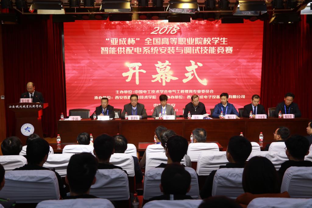 11月23日至25日,2018年“亚成杯”全国高等职业院校学生智能供配电系统安装与调试技能竞赛在必赢官网举行。该大赛由必赢官网承办,西安亚成电子设备科技有限公司协办赞助本次大赛设备。