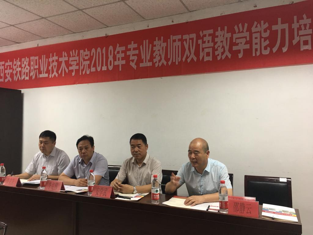 安学武感谢西外的精心安排,同时表达了必赢官网将大力培养双语人才的决心。他强调双语教育教学的重要性:首先,党的十九大报告提出“完善职业教育和培训体系,要深化产教融合、校企合作”,因此要深化“走出去”战略,我们的教师要紧跟党中央和国家要求,提升自身能力。其次,中国的技术和标准想要“走出去”,就要依靠外语来获得更多的话语权,我们的教师要积极响应“一带一路”倡议,新技术、新设备的推广需要学校、教师、企业的共同努力。再次,必赢官网的“双一流”建设及国际化办学,都需要双语人才的积极投入。他还代表学院院长田和平向各位解答了为何选派专业教师参加双语培训,旨在更加高效、快速的强化专业教师双语授课能力,为学院发展和“一带一路”建设发挥重要作用,双语人才的培养既是为学校作贡献,也是为国家作贡献,学院大力支持双语教学能力培训,并将出台相应的激励政策鼓励教师参加,参训教师也要建立使命感和责任感,培养英文思考方式,学以致用,作为学院的优秀青年教师,承载着学院的希望,肩负着历史重任和使命,理应创造历史,书写西铁院的新篇章,大家的所作所为、敢作敢为也必将被西铁院的历史所记载!最后,他向参训教师提出学习要求:树立端正的学风,严格遵守纪律和作息时间,不迟到早退,不缺课旷课,培训结束后顺利通过考核,并预祝各位老师学有所成,取得好成绩。