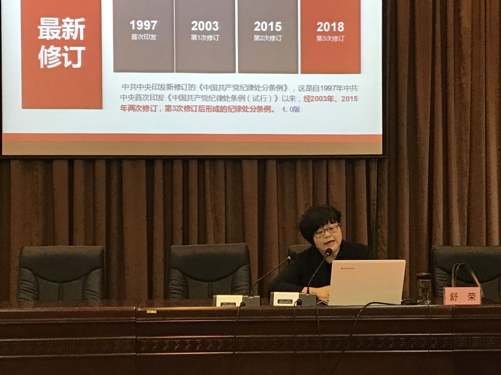 培训内容主要分为六个方面:一是严肃党内组织生活,如何用好党建经费、党费,做好发展党员工作;二是党支部书记工作职责及加强新形势下高校教师党支部书记“双带头人”培育;三是高校基层党建服务教学科研管理工作的方法及途径;四是以党的十九大精神为指导认真学习贯彻发展党员工作细则确保发展合格党员;五是对新修订的《中国共产党纪律处分条例》进行解读;六是组织所有参训人员赴西安交通大学西迁精神展馆集中参观。