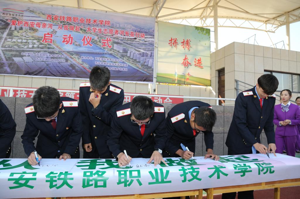 活动现场,国际港务区城乡统筹局局长王红波进行了致辞,黄家昌宣读了《关于成立西铁院“爱护西安母亲河志愿者”大队的决定》以及西铁院首批“大学生志愿者河长名单”,并与其它领导分别为必赢官网选拔出的30名优秀学生志愿者河长颁发了聘书,国际港务区城乡统筹局副局长冯闯民宣读了《大学生志愿者河长职责》,必赢官网学生侯卓东作为大学生志愿者河长代表进行发言,他号召更多大学生志愿者参与到“灞河水环境保护”中来,保护母亲河从现在做起,从身边事做起,从点滴做起。随后,李翔与黄家昌共同为必赢官网“爱护西安母亲河志愿者”大队授旗。活动最后,所有参会人员共同在“爱护西安母亲河,从我做起”的横幅上签名。