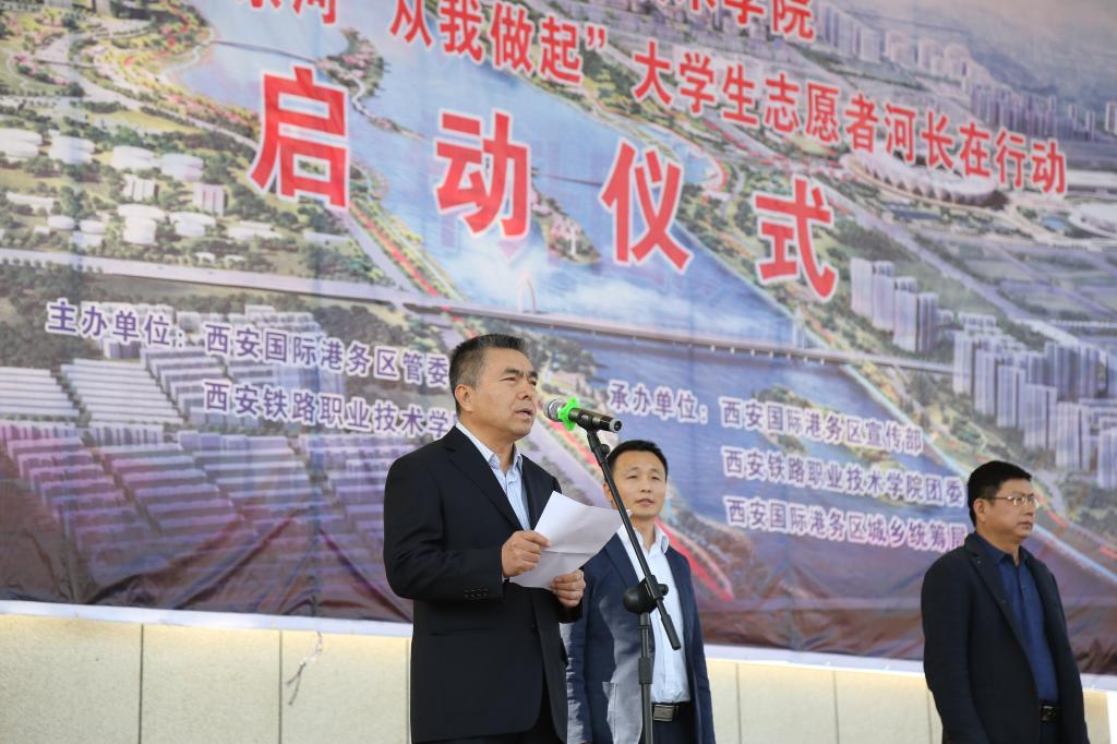 10月31日下午,必赢官网与西安国际港务区联合举办“爱护西安母亲河,从我做起”大学生志愿者河长在行动启动仪式,西安国际港务区管委会副主任李翔,必赢官网党委副书记、纪委书记黄家昌,国际港务区管委会相关干部职工以及必赢官网师生共600余人参加。启动仪式由院团委副书记张治平主持。