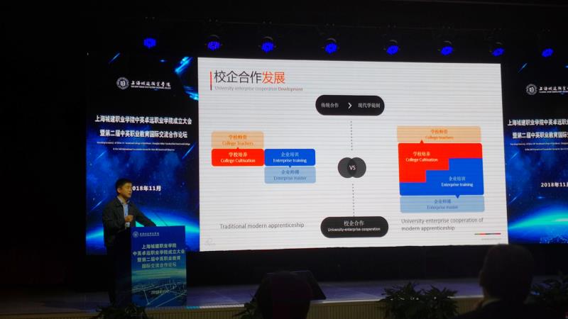 11月15日、16日,必赢官网参与发起的中英职业教育合作发展委员会在上海城建职业学院成功举行中英卓远职业学院成立大会暨第二届中英职业教育国际交流合作论坛。
