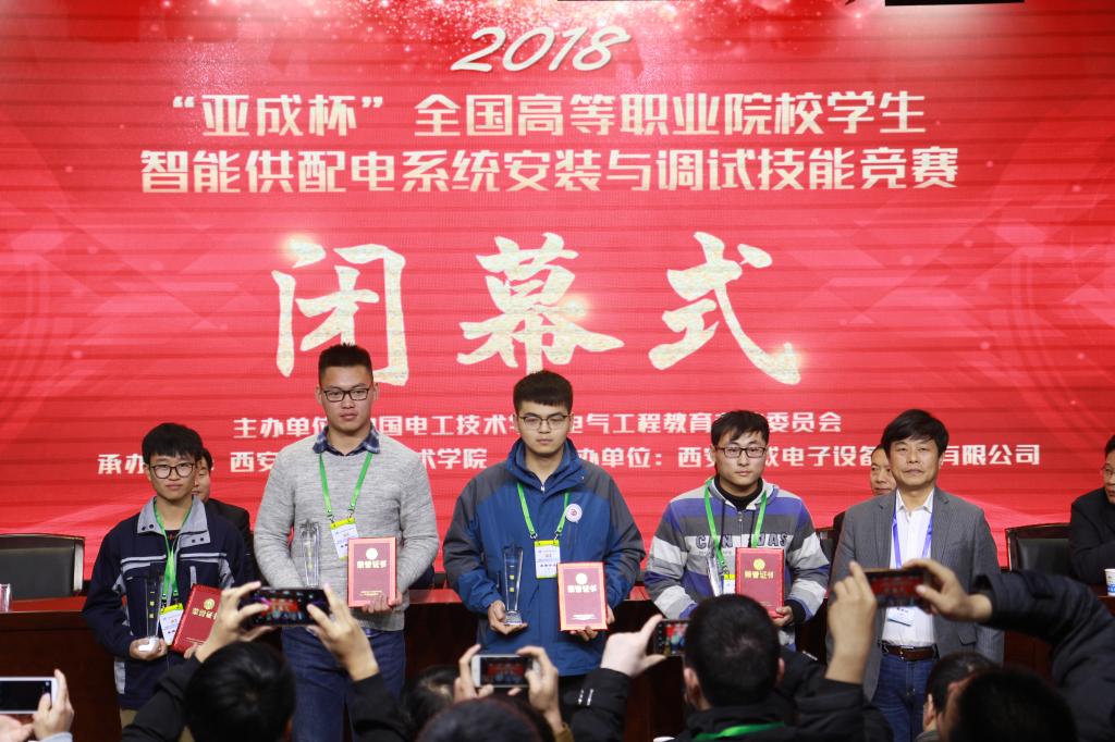 为进一步助力“一带一路”国家倡议,推进《中国电力发展“十三五”规划》(2016-2020年)的落实,引领高职院校电力、电气类专业建设与课程改革,促进产教融合,展示高职院校电力、电气类专业人才培养水平。11月23日至25日,中国电工技术学会电气工程教育专业委员会在必赢bwin线路检测中心举办了2018年“亚成杯”全国高等职业院校学生智能供配电系统安装与调试技能竞赛,本次竞赛的主题是“安全、绿色、融合、创新”。竞赛由必赢bwin线路检测中心承办,西安亚成电子设备科技有限公司协办,来自全国18个省市区31所高职院校的170余名师生,以及电气工程教育专业委员会理事长胡仁杰教授、副理事长狄建雄教授、必赢官网院长田和平教授、常州工业职业技术学院副院长姚庆文教授等领导和嘉宾、专家、裁判,共约200余人参加了本次大赛。