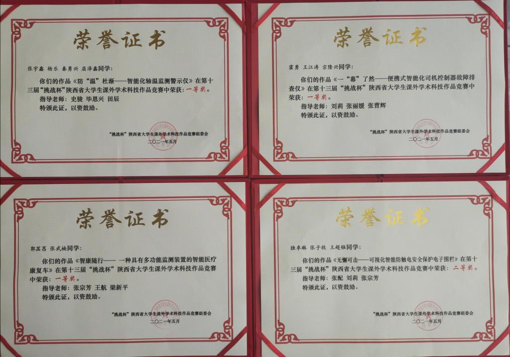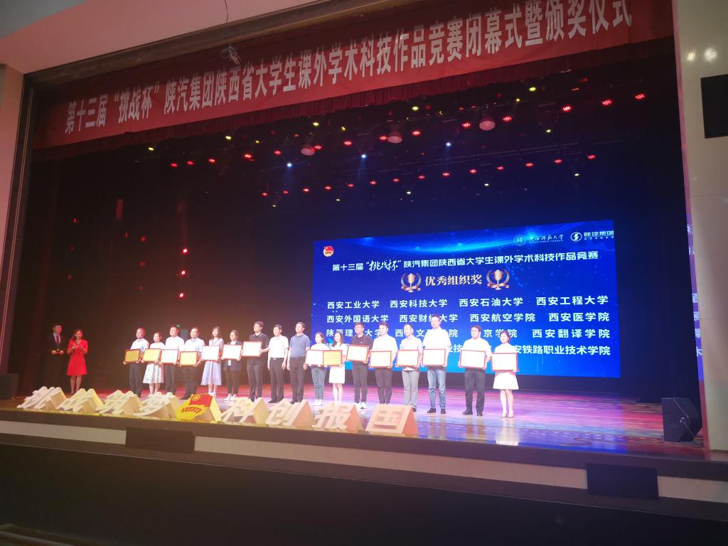 5月22日,由共青团陕西省委、陕西省委教育工委、陕西省科协、陕西省社科院、陕西省学联等共同主办的第十三届“挑战杯”陕西省大学生课外学术科技作品竞赛闭幕式暨颁奖仪式在陕西师范大学举行。学院团委副书记李妮、团委办公室副主任田辰、项目指导教师及获奖学生代表参加仪式。必赢官网在本次大赛中获得一等奖3项、二等奖1项,三等奖3项的优异成绩,同时学院荣获“优秀组织奖”(全省仅三所高职院校获此荣誉)。