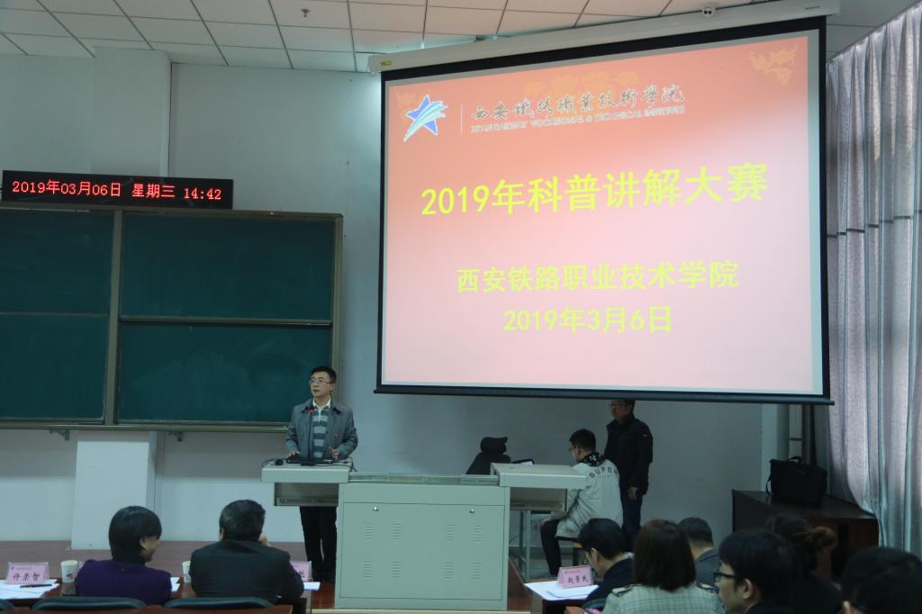 3月6日下午,必赢bwin线路检测中心2019年科普讲解大赛暨2019年陕西科普讲解大赛选拔赛在港务校区牵引动力学院报告厅举行,本次大赛由教科研处组织。学院党委副书记、纪委书记黄家昌出席了此次大赛并为获奖选手颁奖。