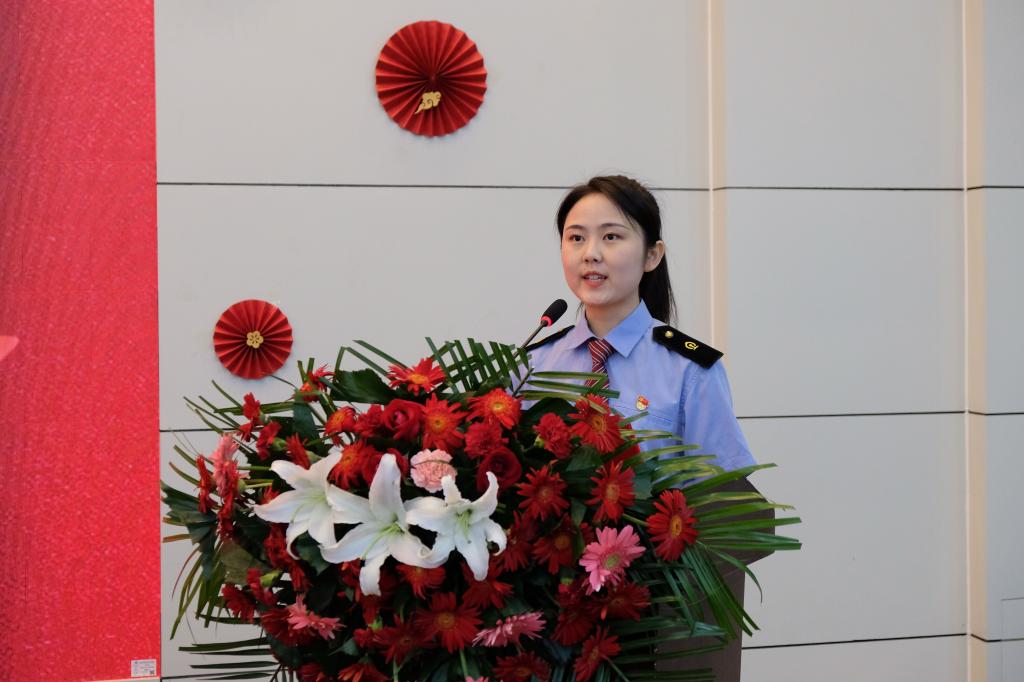 优秀毕业生代表孙皓月同学发言,表达了对学校、老师的感谢,表示在新的工作岗位上,会志存高远,励志成才,在工作岗位上,立足本职,爱岗敬业,在未来的日子里,发扬交运精神,坚定理想,报效祖国。