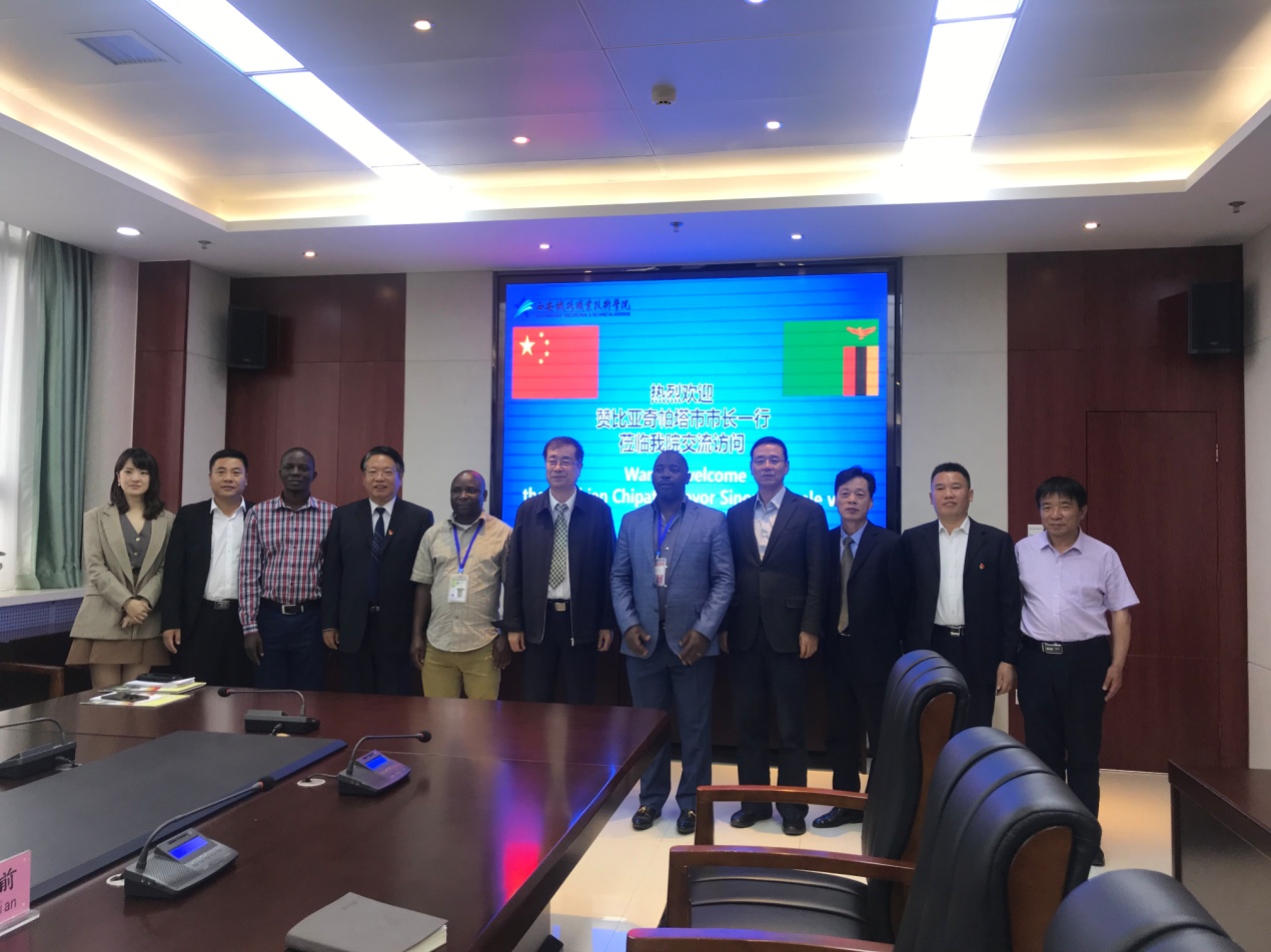 在参加丝博会期间,赞比亚奇帕塔市市长锡诺亚·威尔携城市规划局局长斯坦· 姆瓦卡亚亚、议员姆瓦库塔·耶尔于5月14日上午访问西铁院。