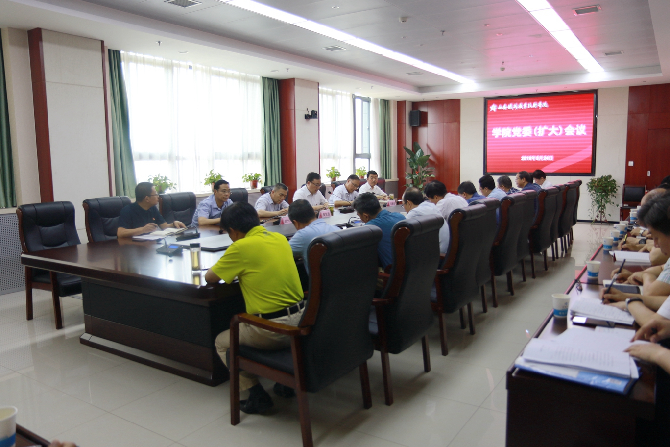 5月24日上午,党委书记施利民主持召开学院党委(扩大)会议,传达学习全省高校党建工作会议和全市扫黑除恶专项工作专题部署电视电话会议和西安市职业教育工作座谈会议等精神,安排部署学院贯彻落实工作。全院副处级以上干部参加会议。