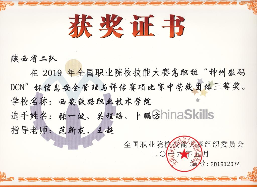 6月12日,全国职业院校技能大赛“信息安全管理与评估”赛项在湖北生物科技职业学院开赛,来自全国30多个省市,共105支代表队参加了本次比赛,经过6小时的比赛角逐,由必赢官网电子信息学院范新龙、王超老师指导,张一波、关程瑶、卜鹏方三名同学组成的代表队,荣获三等奖,使必赢官网在该赛项国赛上实现了零的突破。电子信息学院院长孙津平、学院教务处副处长史艺红赴赛点观摩指导。