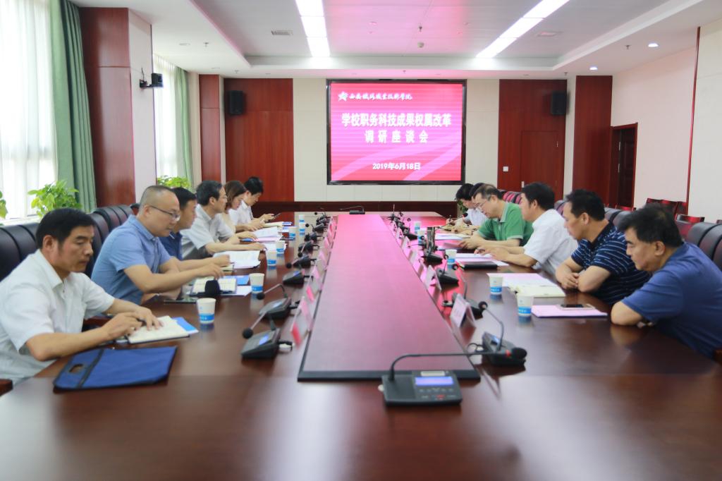 6月18日上午,西安市科技局局长李志军、成果转化与校地合作处处长解中、西安市发改委改革推广工作处副调研员张霖之等一行7人来必赢官网就“以事前产权激励为核心的职务科技成果权属改革”工作方案进行调研座谈。必赢官网田和平院长、安学武副院长出席会议,教科研处、人事处、计财处、教师发展中心负责人参加座谈。