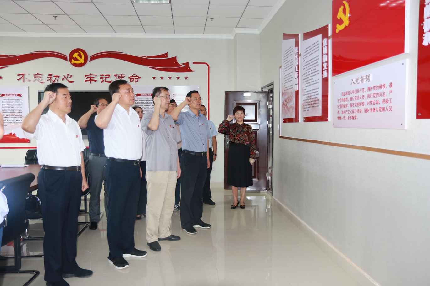 参观结束后,领导班子成员在师生政治生活馆重温了入党誓词,面对鲜红的党旗,举起右拳,庄严宣誓。