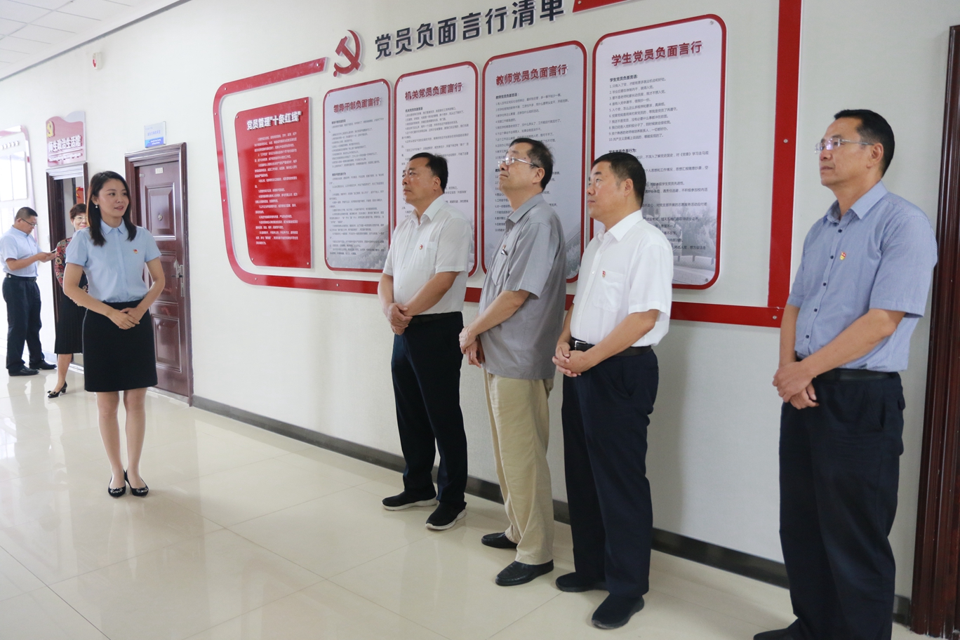 七一前夕,必赢bwin线路检测中心党委领导班子成员集体在西铁院党建文化长廊和师生政治生活馆开展了党性教育活动。学院党委书记施利民、院长田和平、副院长安学武、副院长赵六杰及党群工作部门负责人等参加活动。