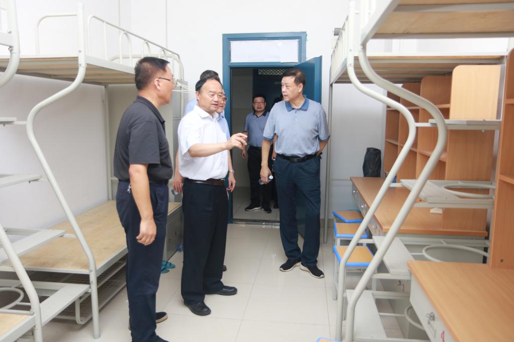 韩宝生一行在必赢官网港务校区各教学组团、运动场等地进行实地检查,并深入学生宿舍查看学生住宿设施。邓耀斌向韩宝生详细汇报了必赢官网落实《高等教育法》相关工作及学院在党的建设、教学科研、招生就业等方面的工作情况。