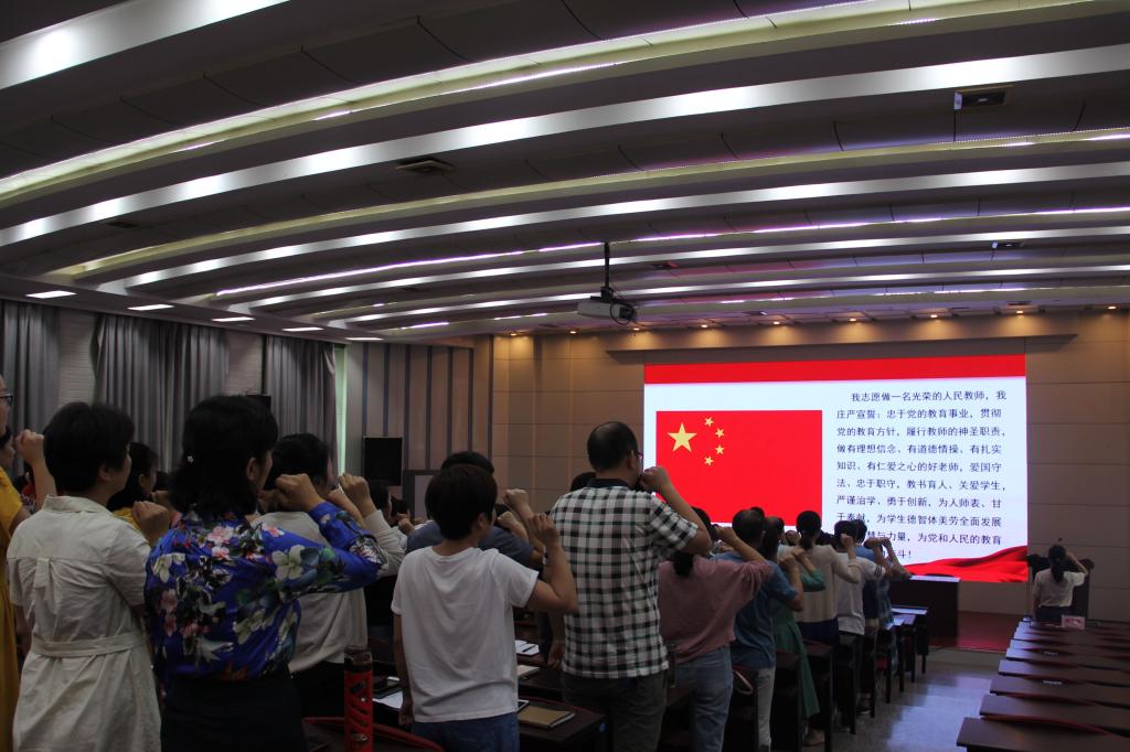 在第35个教师节即将到来之际,为强师德、铸师魂,加强师德师风建设,贯彻落实省教育厅《关于组织开展教师宣誓活动的通知》精神,9月1日至6日,学院各教学院部相继组织教师开展了宣誓活动。学院副院长安学武、二级学院院长、党总支书记、教师发展中心主任及全体教师参加了上述活动。